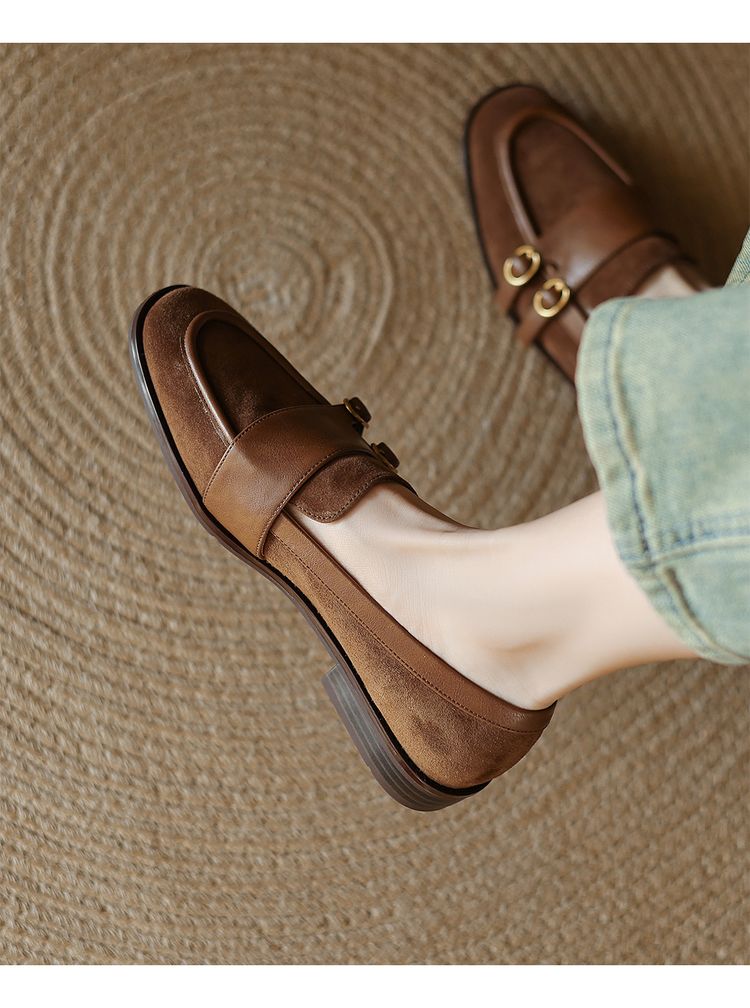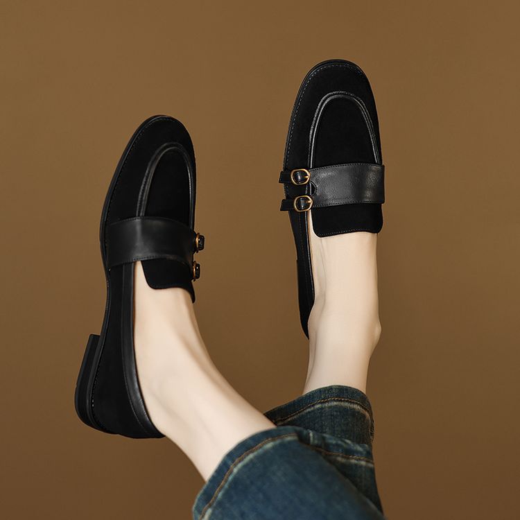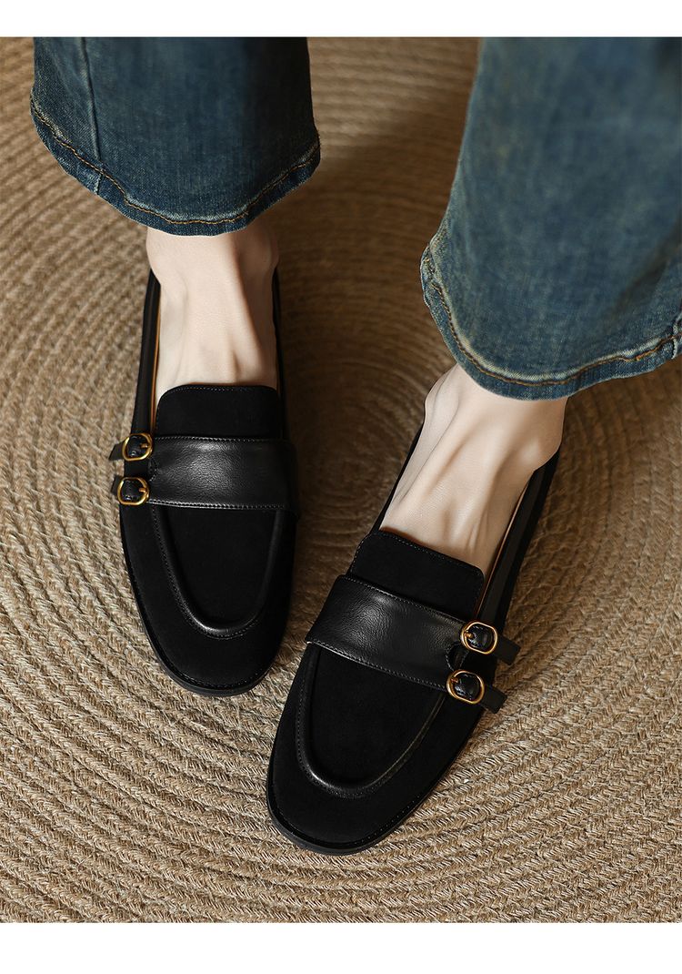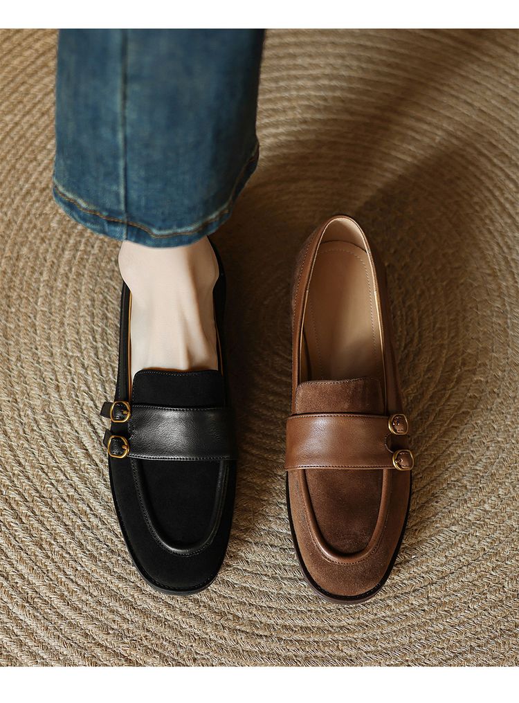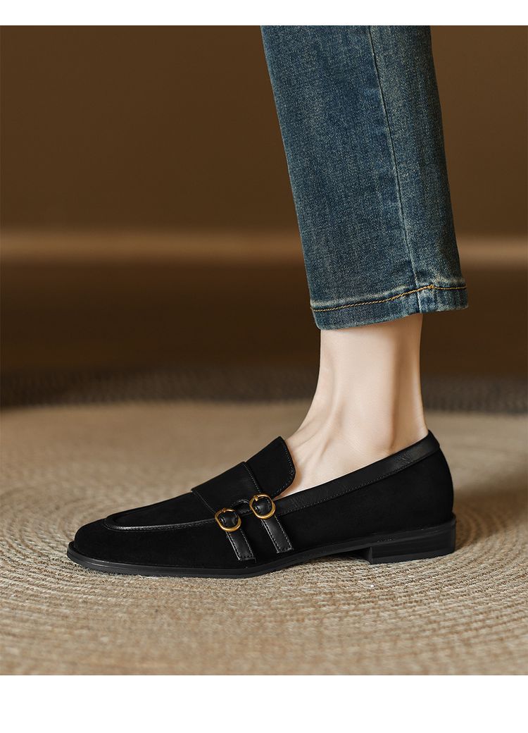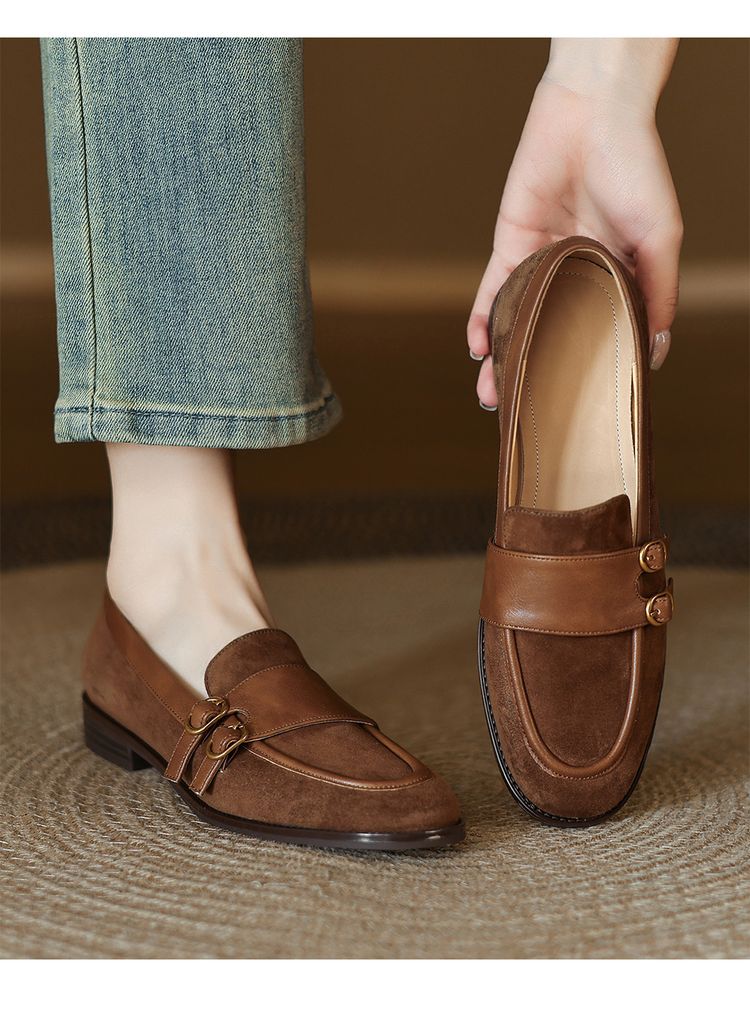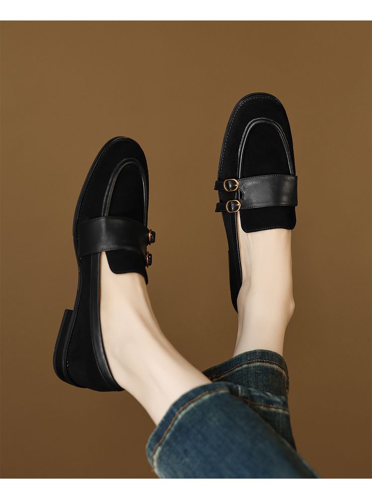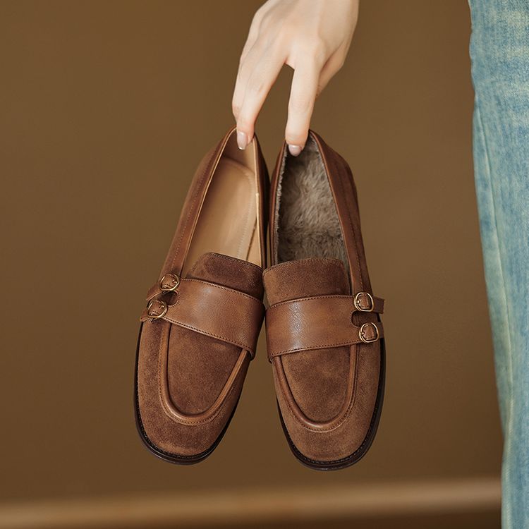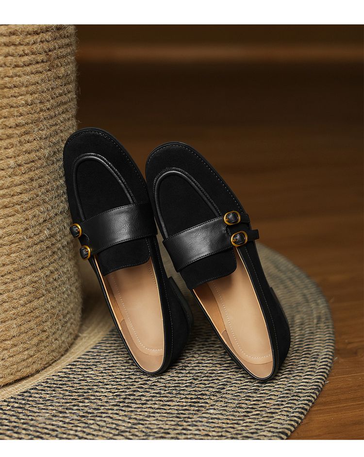 【预售5天】冬季新款加绒保暖毛毛鞋兔毛鞋垫,英伦风中跟小皮鞋羊反绒乐福鞋NGMZR&72-10