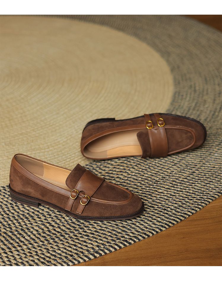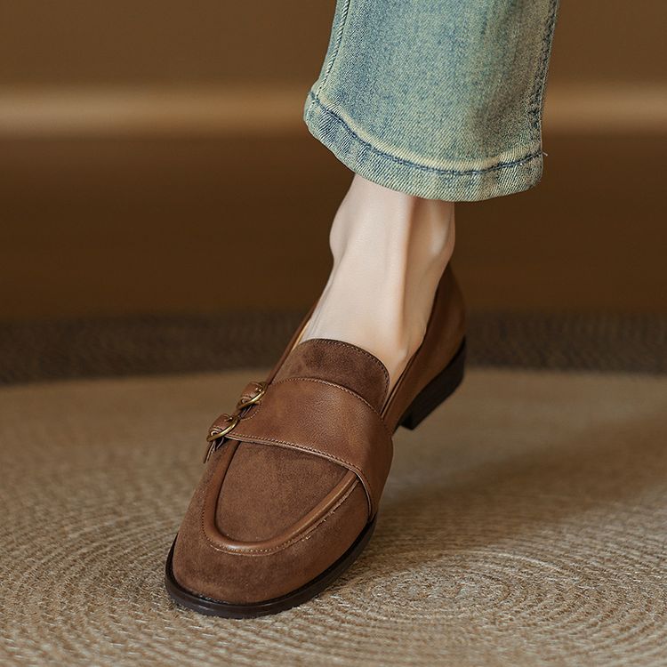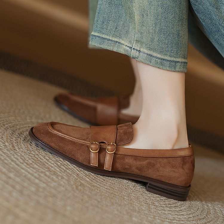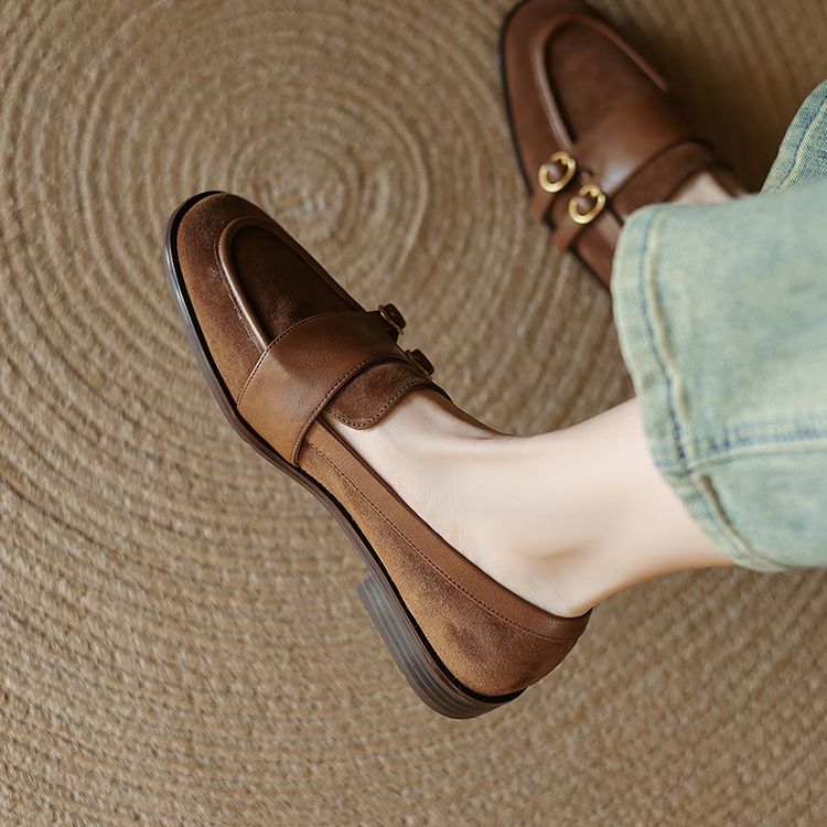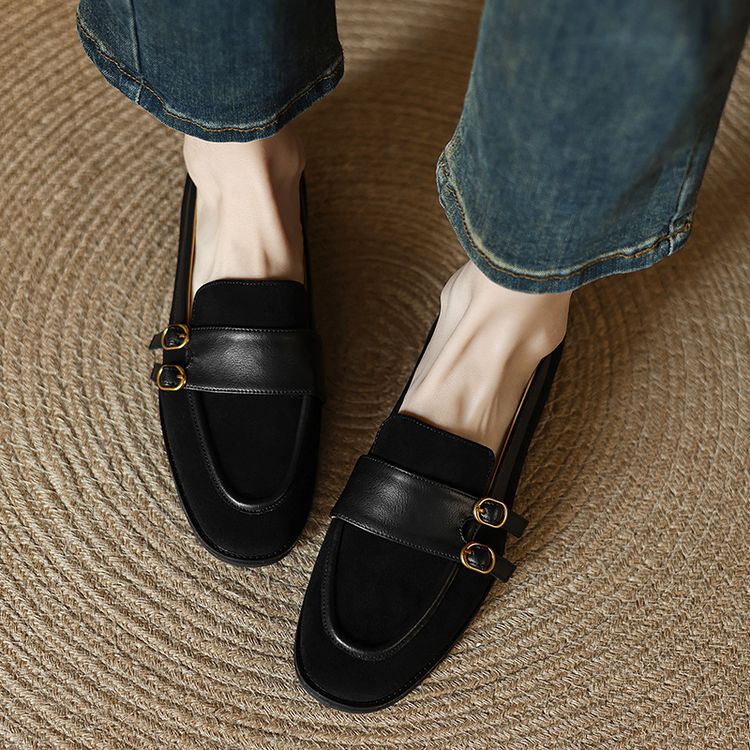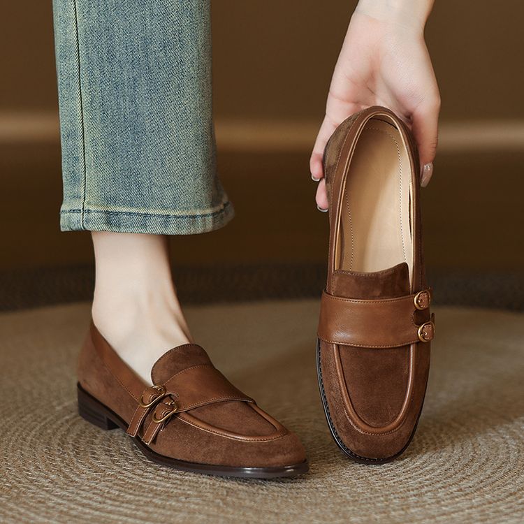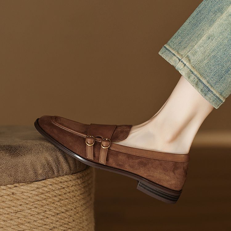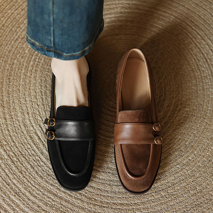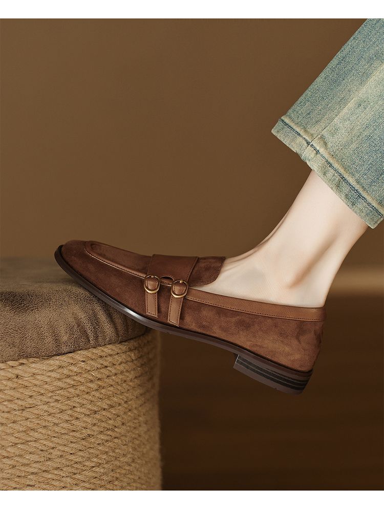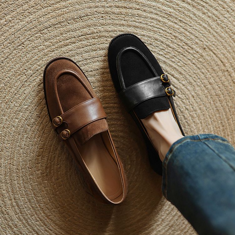【预售5天】冬季新款加绒保暖毛毛鞋兔毛鞋垫,英伦风中跟小皮鞋羊反绒乐福鞋NGMZR&72-10