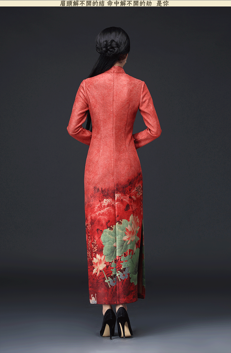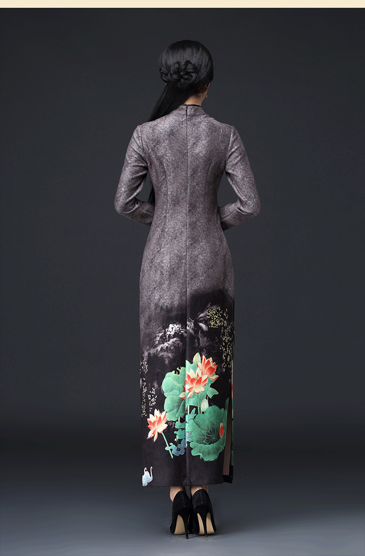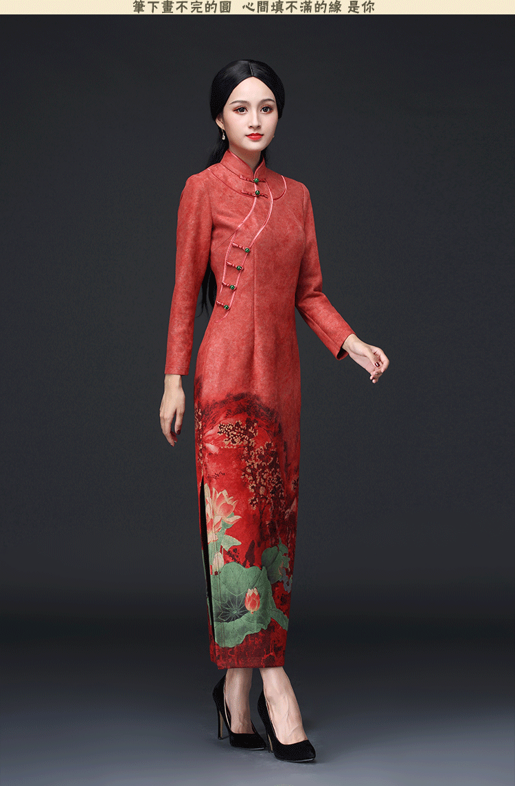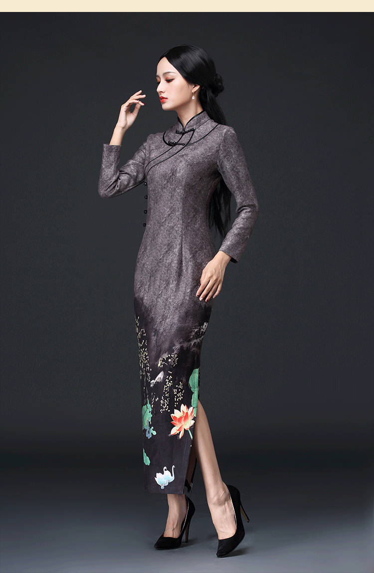 新款鹿皮绒修身复古中袖长款旗袍KLS-A1950