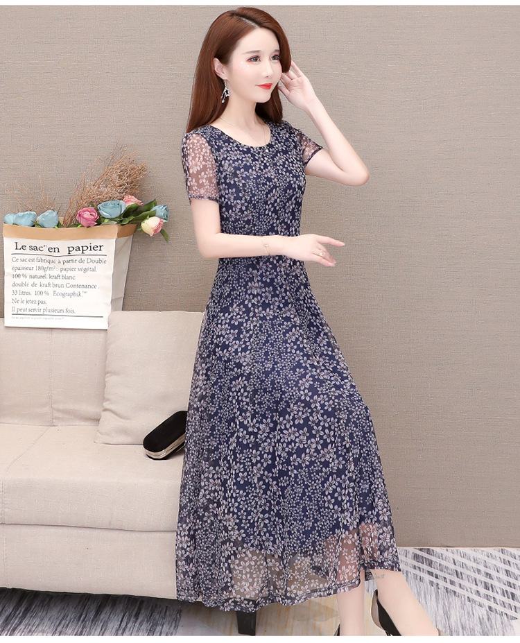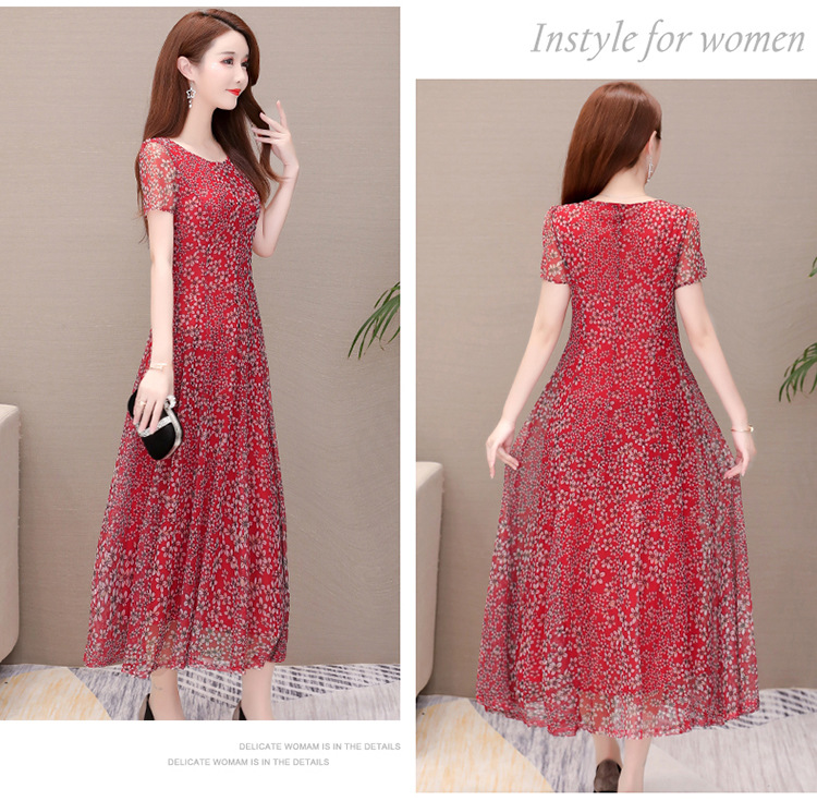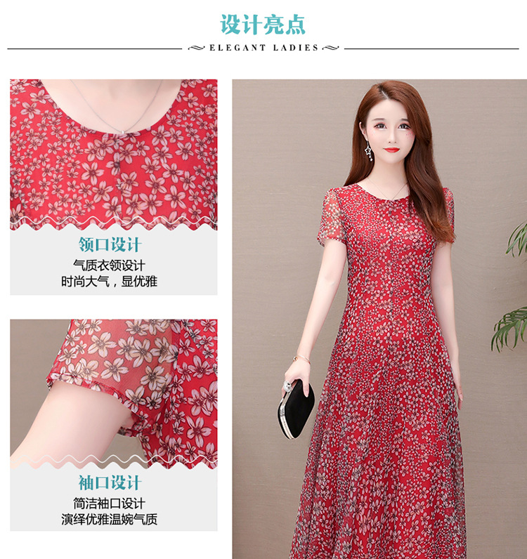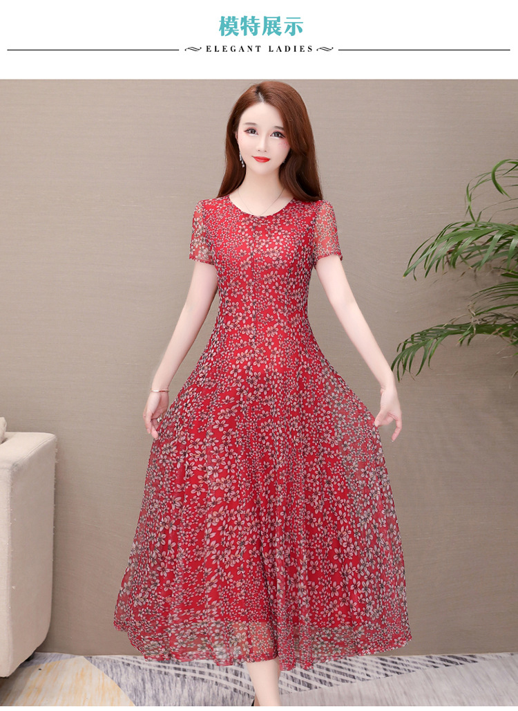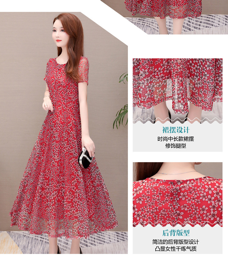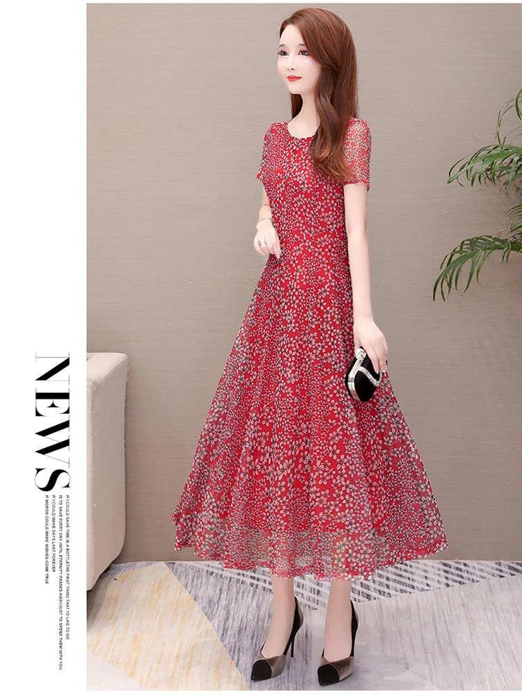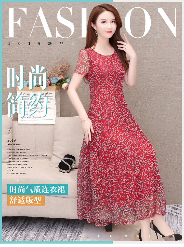 YWE-SJ19BMWC95雪纺碎花夏新款修身显瘦短袖大码中长款a字裙