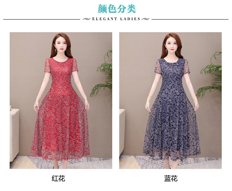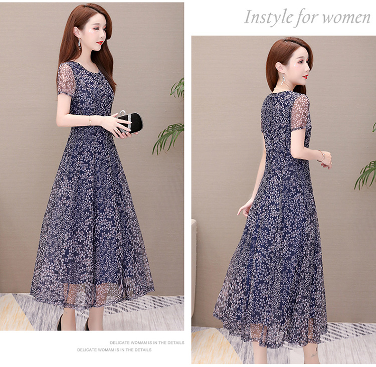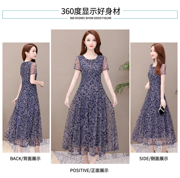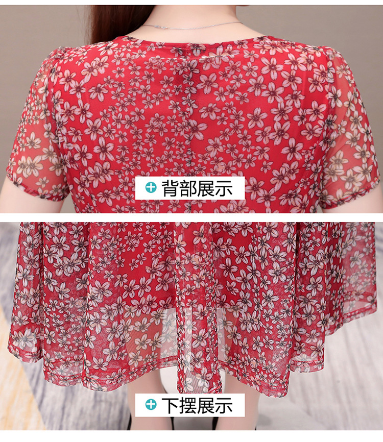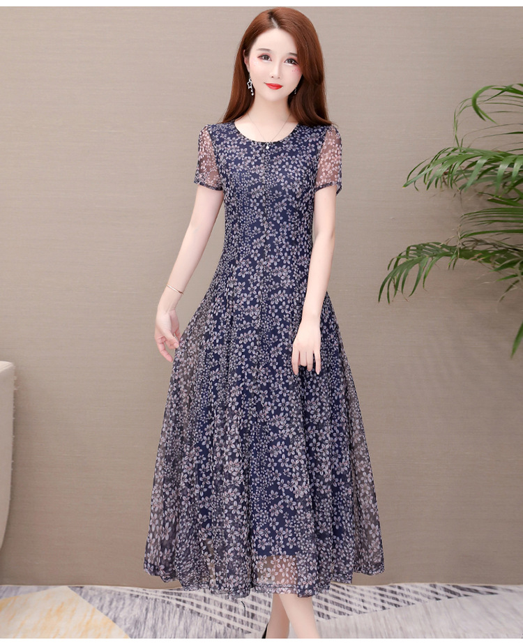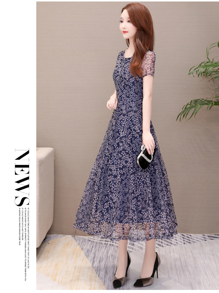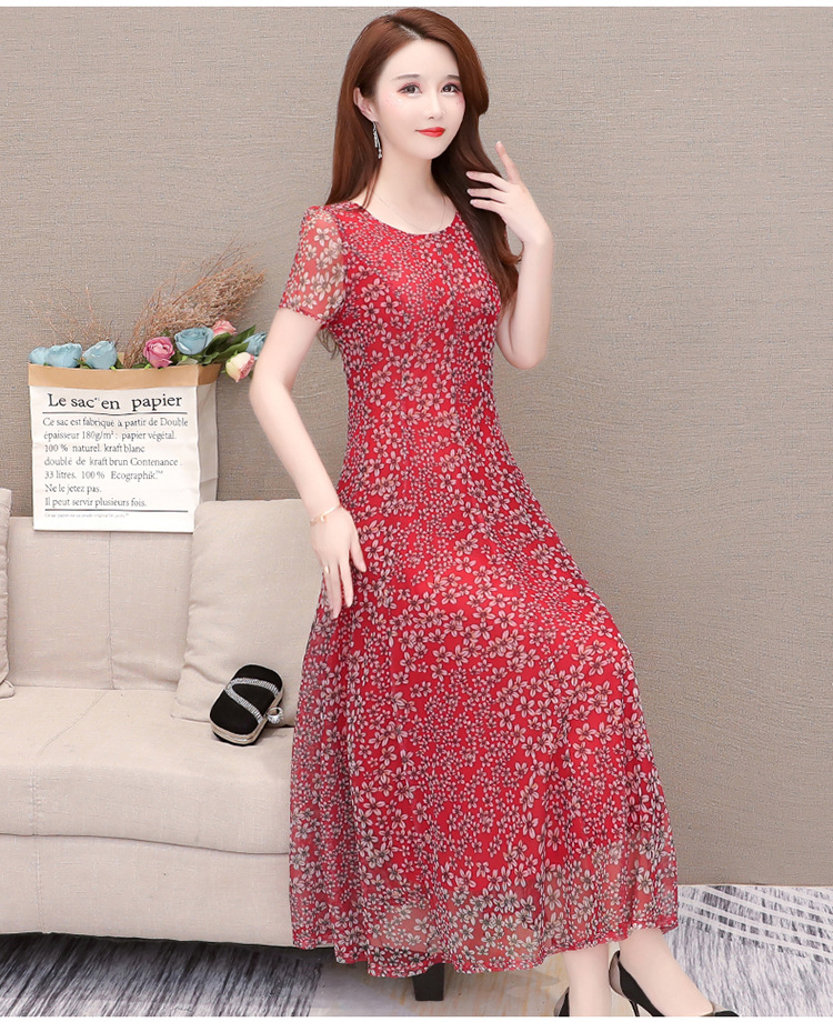 YWE-SJ19BMWC95雪纺碎花夏新款修身显瘦短袖大码中长款a字裙