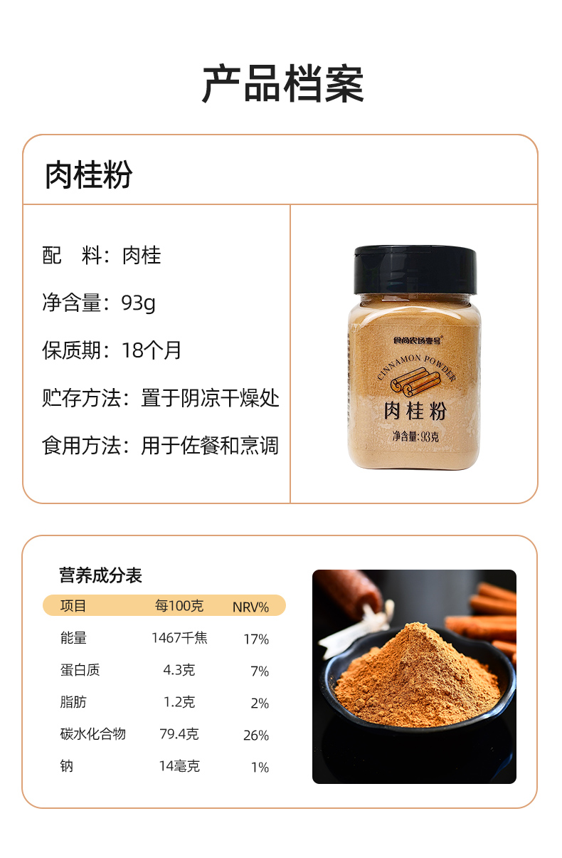 食尚农场肉桂粉 93g/瓶
