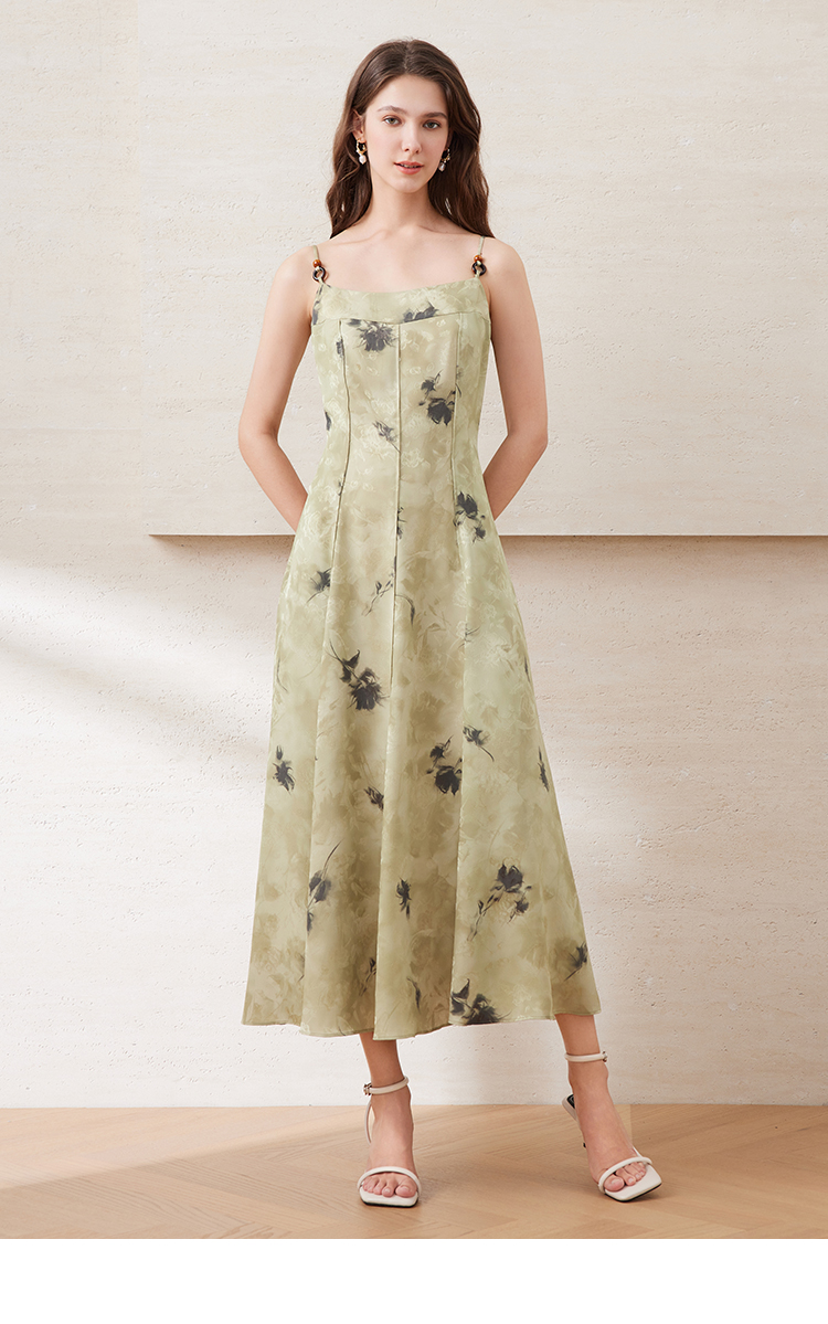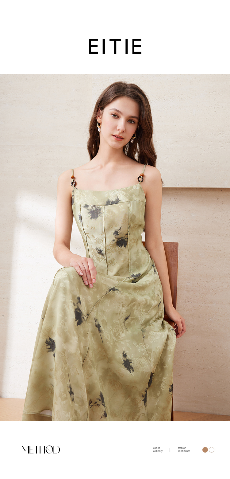 【新中式印花吊带裙】EITIE爱特爱夏季新款氛围感大裙摆及B2507610