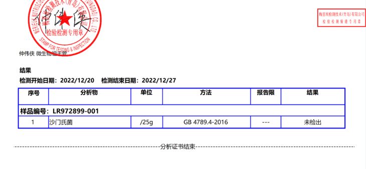 蜂蜜志贺氏菌、沙门氏菌、金黄色葡萄球菌等无检出