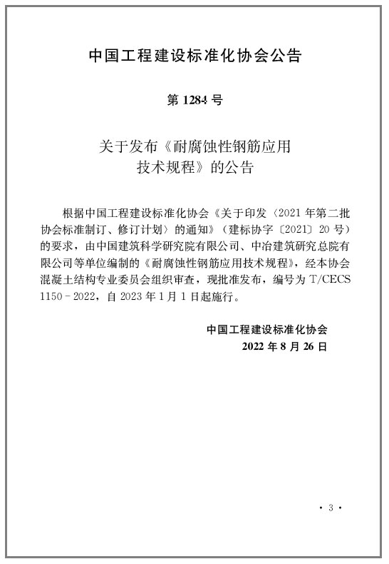 书名:耐腐蚀性钢筋应用技术规程 T/CECS 1150-2022