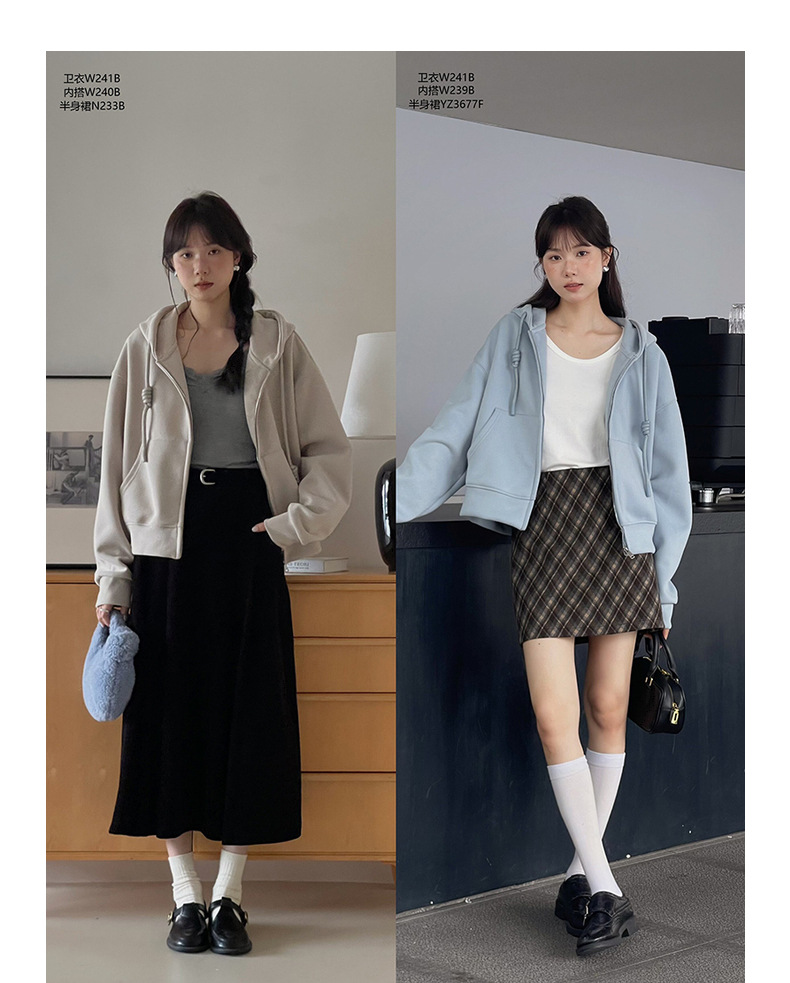 雀说韩系通勤加绒连帽卫衣外套2025冬季衣服女宽松上衣WAL241B