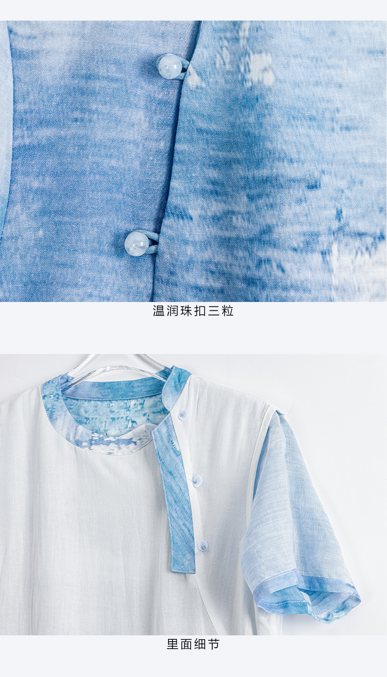 雀说新款高端苎麻印花新中式改良旗袍国风立领短袖文艺连衣裙ALS523