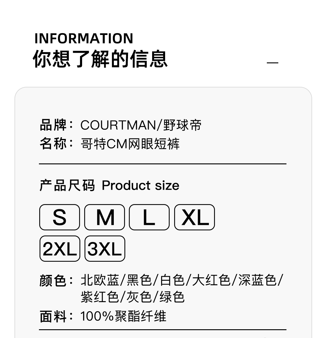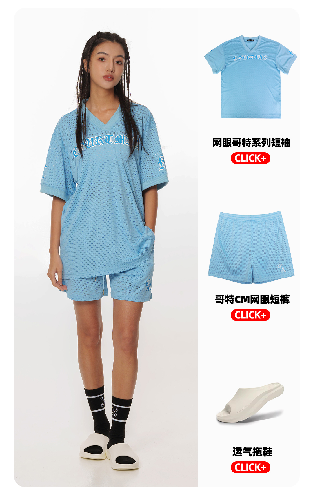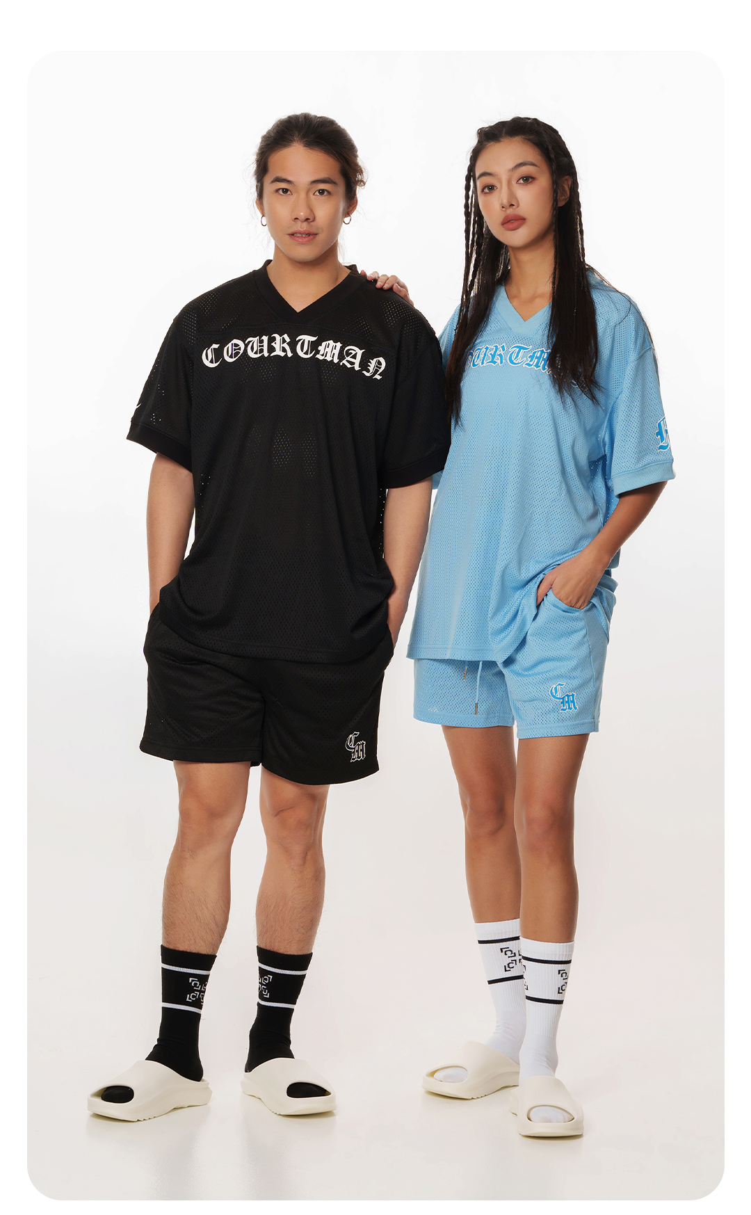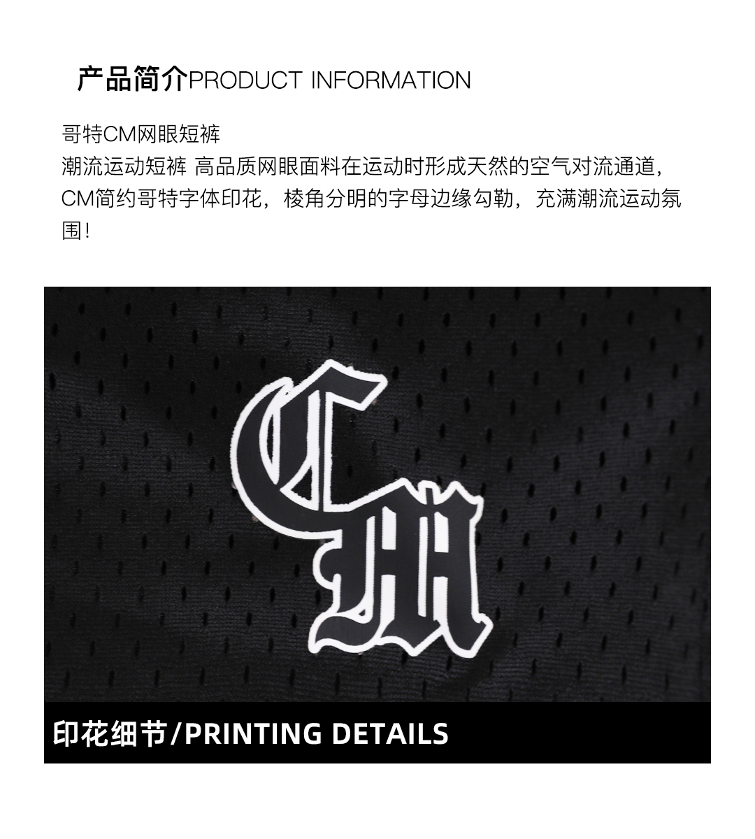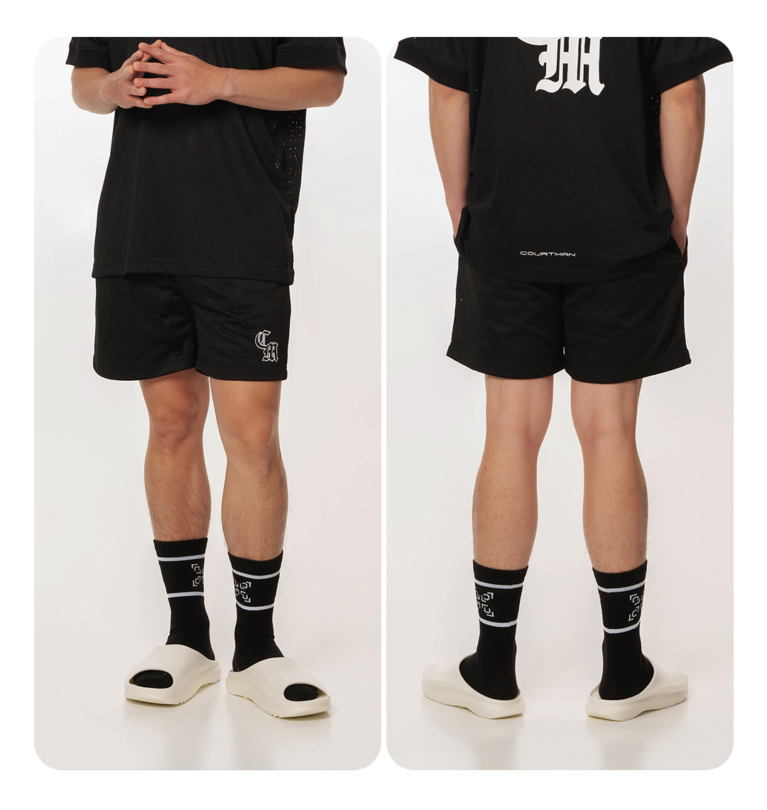 COURTMAN野球帝哥特风美式篮球短裤透气训练跑步健身运动短裤网眼