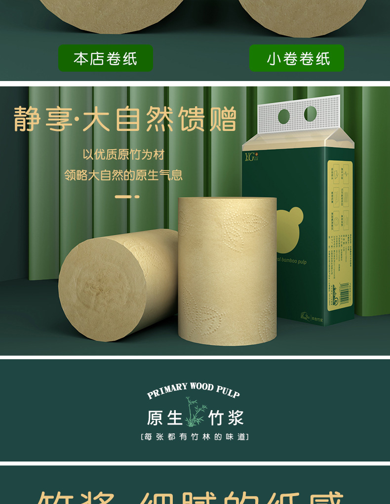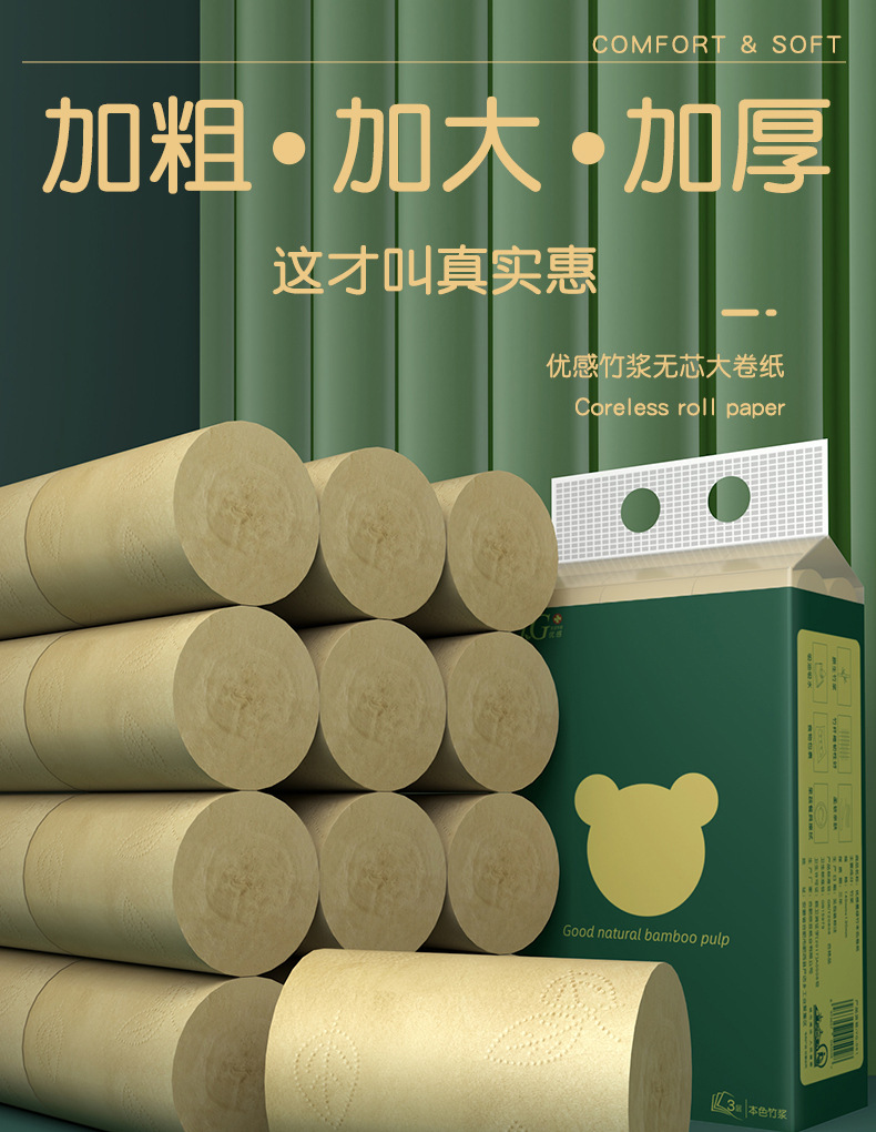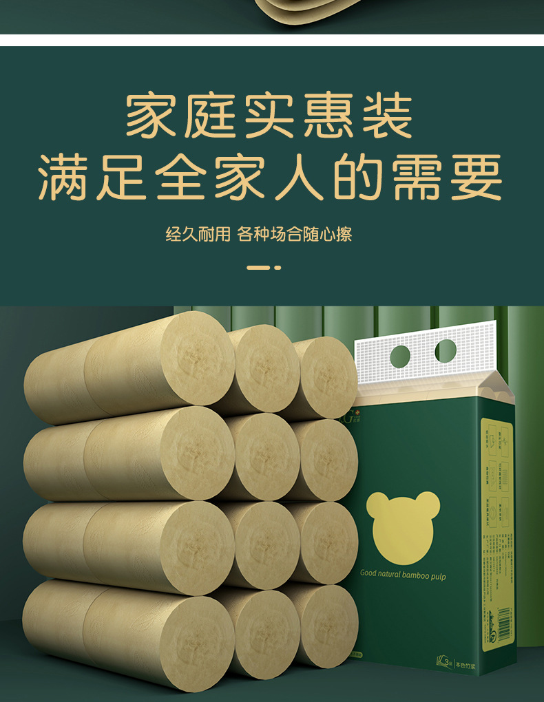 YG原色 15大卷本色竹浆卷纸巾家用整箱厕所卷筒纸手纸厕纸卫生纸