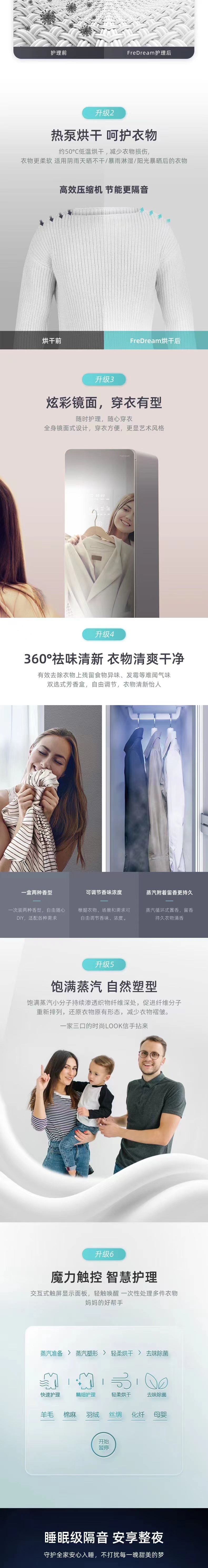 FreDream/斐郡 智能衣物护理机 热泵变频烘干机 蒸汽除菌除螨 家用消毒干衣柜 【2022镜面时尚款】E00A3件上衣款