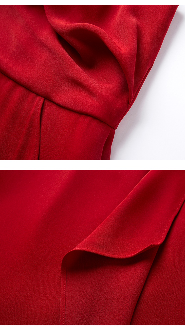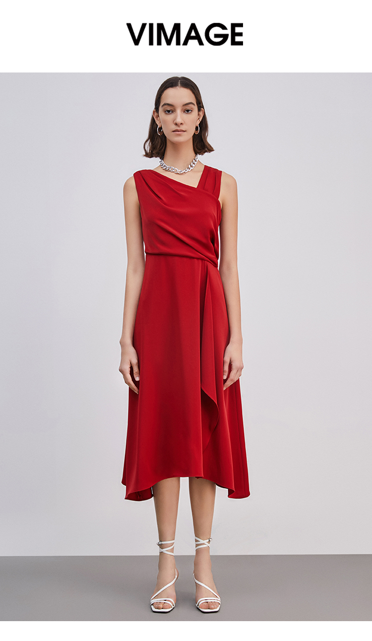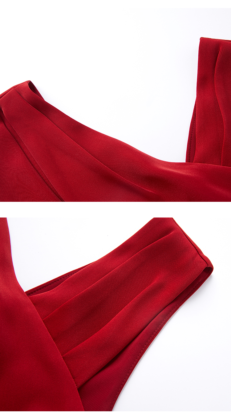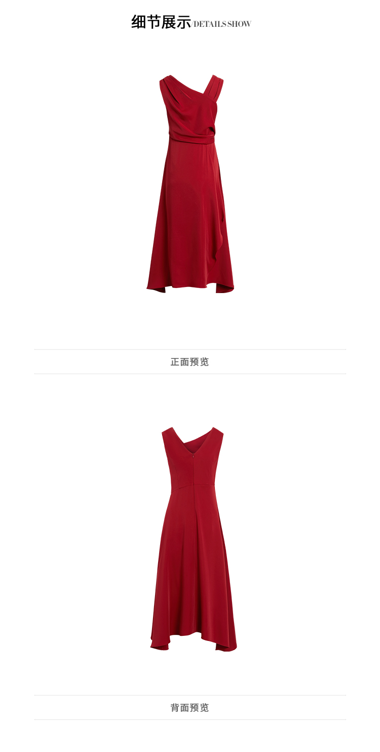 VIMAGE纬漫纪优雅洋装露肩晚礼服裙后背深V红色连衣裙VB2107112