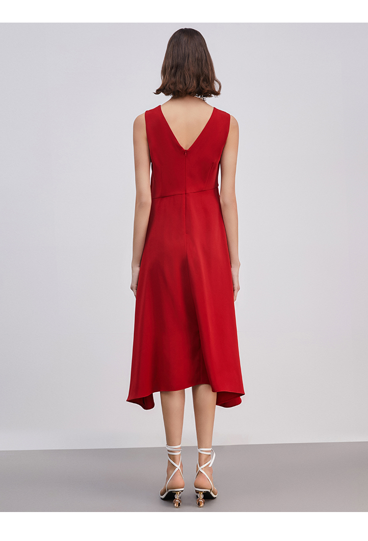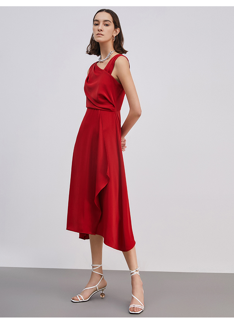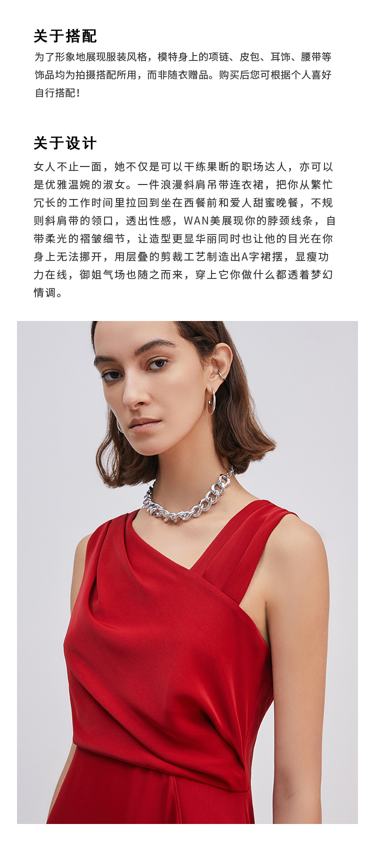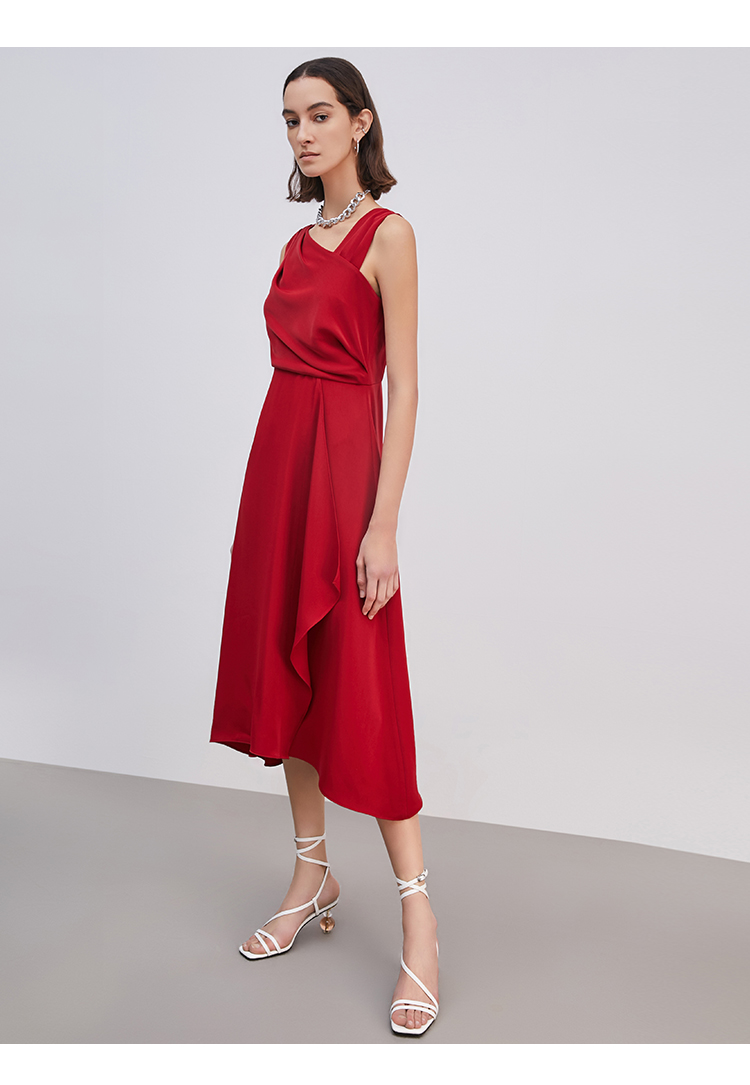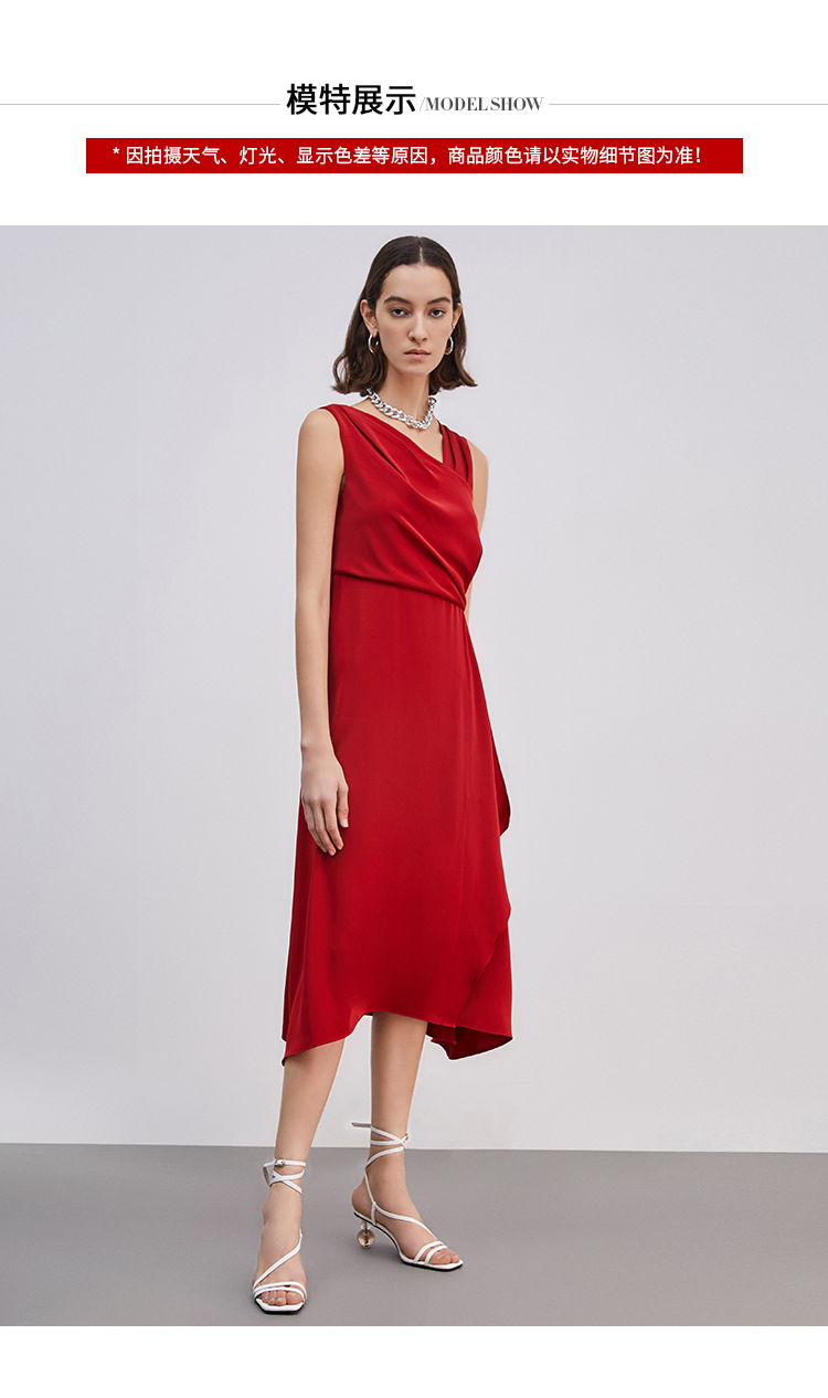 VIMAGE纬漫纪优雅洋装露肩晚礼服裙后背深V红色连衣裙VB2107112