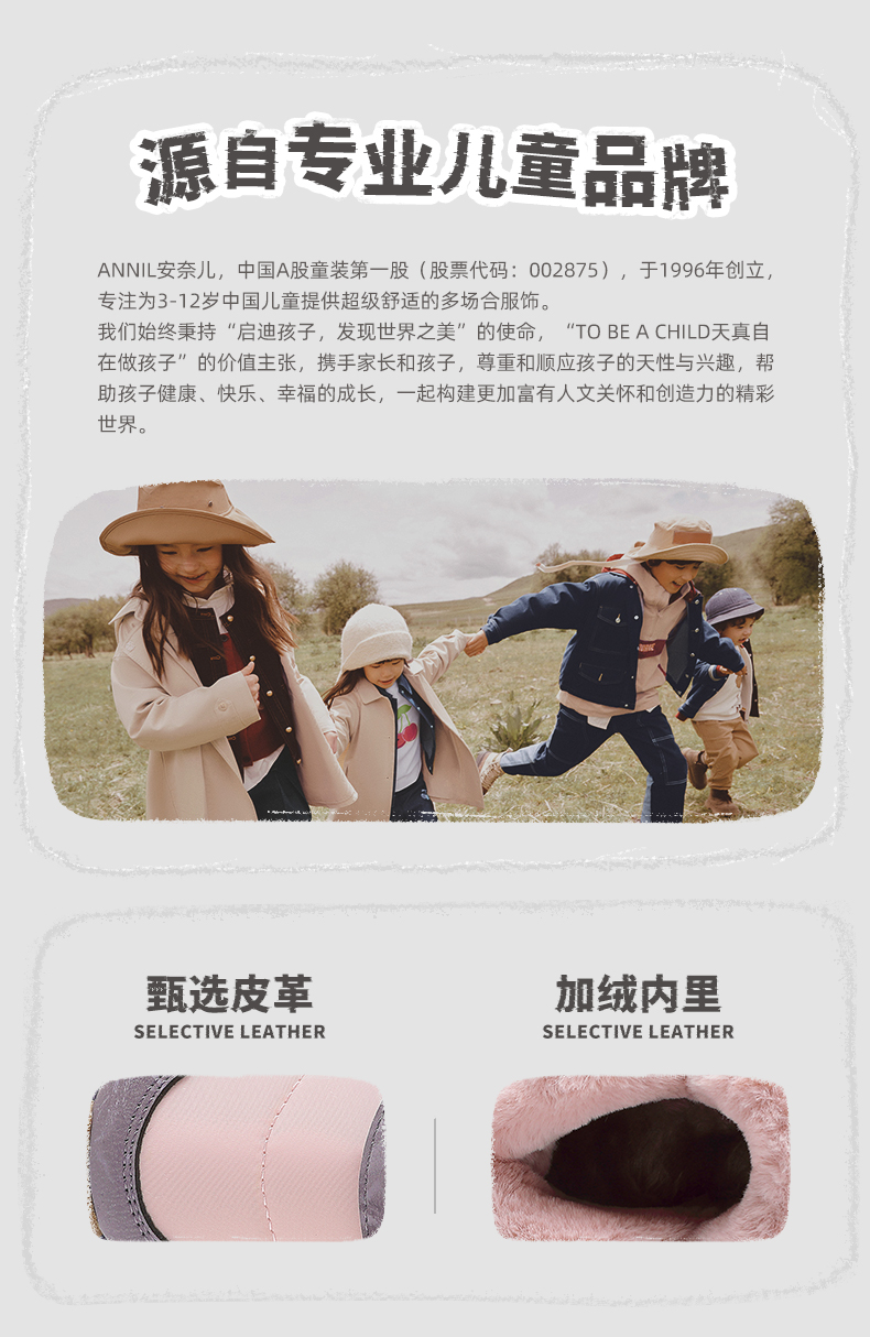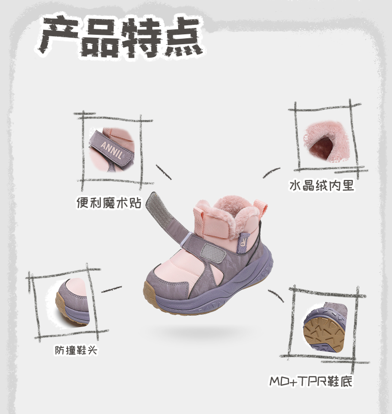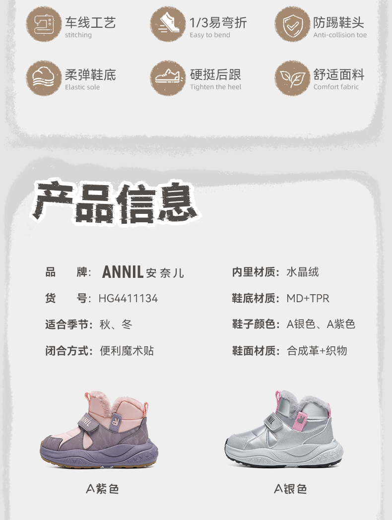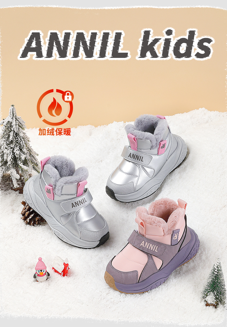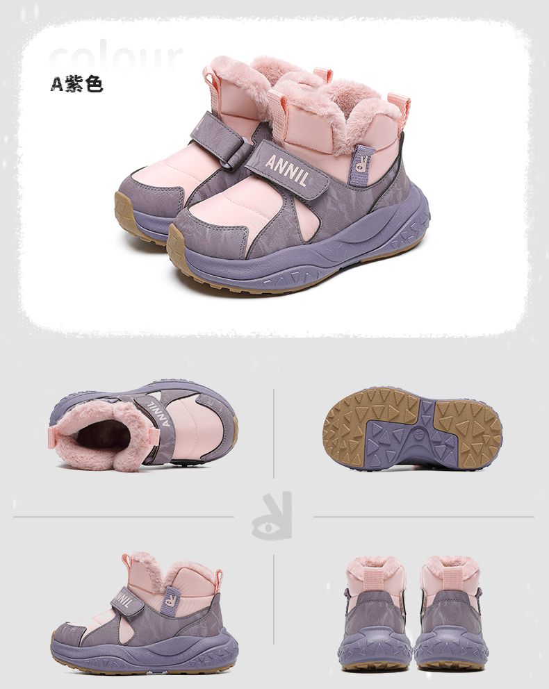 ANNIL/安奈儿童鞋冬季加绒加厚雪地靴时尚冬鞋女宝宝棉鞋水晶绒里HG4411134