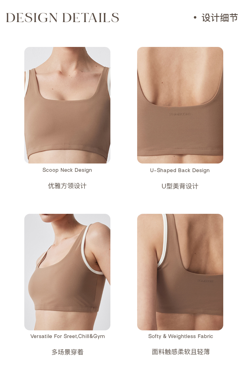 PRIMECORE 瑜伽上衣背心带胸垫运动文胸女高强度防震假两件无痕