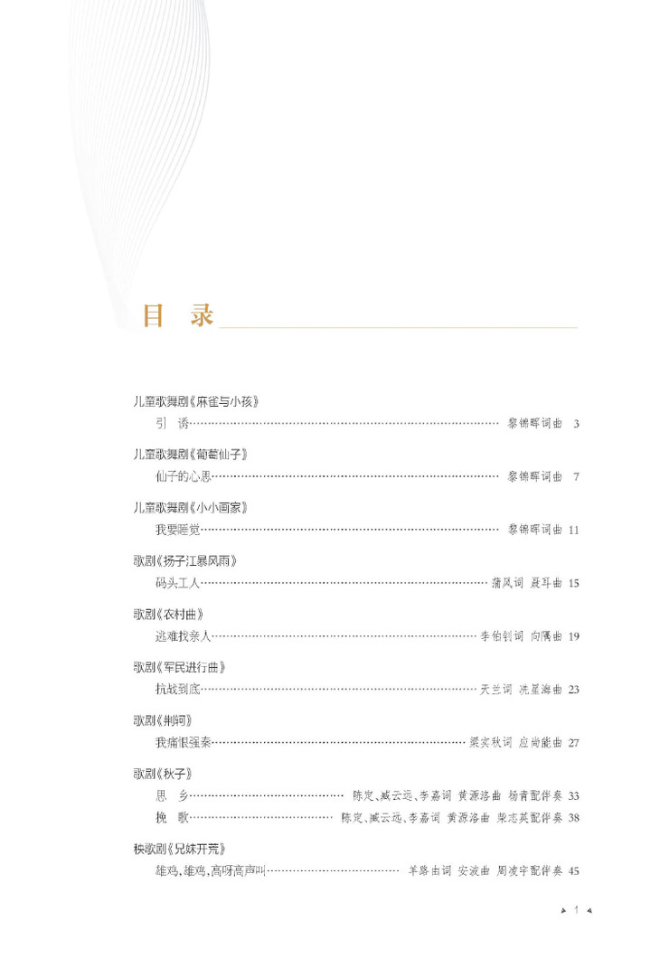 《中国歌剧百年——精选唱段集萃》以年代为编辑原则分为九册,涵盖了20世纪20年代至2018年创作的117部歌剧,366首唱段。本书是第一册,收录了1920-1959年间创作演出的22部歌剧中的40首唱段,如:《我痛恨强秦》《杨白劳》《数九寒天下大雪》《一道道水来一道道山》《洪湖水,浪打浪》《飞出苦难的牢笼》等。乐谱均以五线谱记谱,并全部配有钢琴伴奏谱;曲谱后有作品简介,包含剧情介绍、音乐本体分析和演唱技术提示等内容,使演唱者可以更加直接地了解作品的年代归属与时代特性,从而对音乐本身有了更深层次的理解。