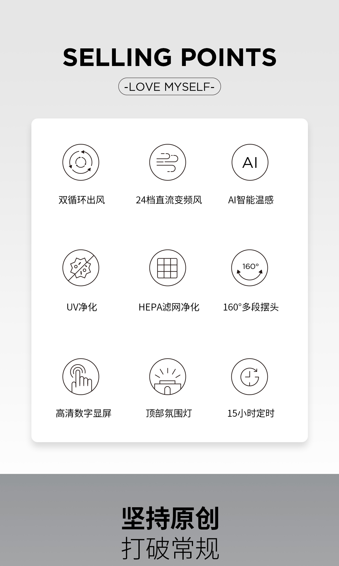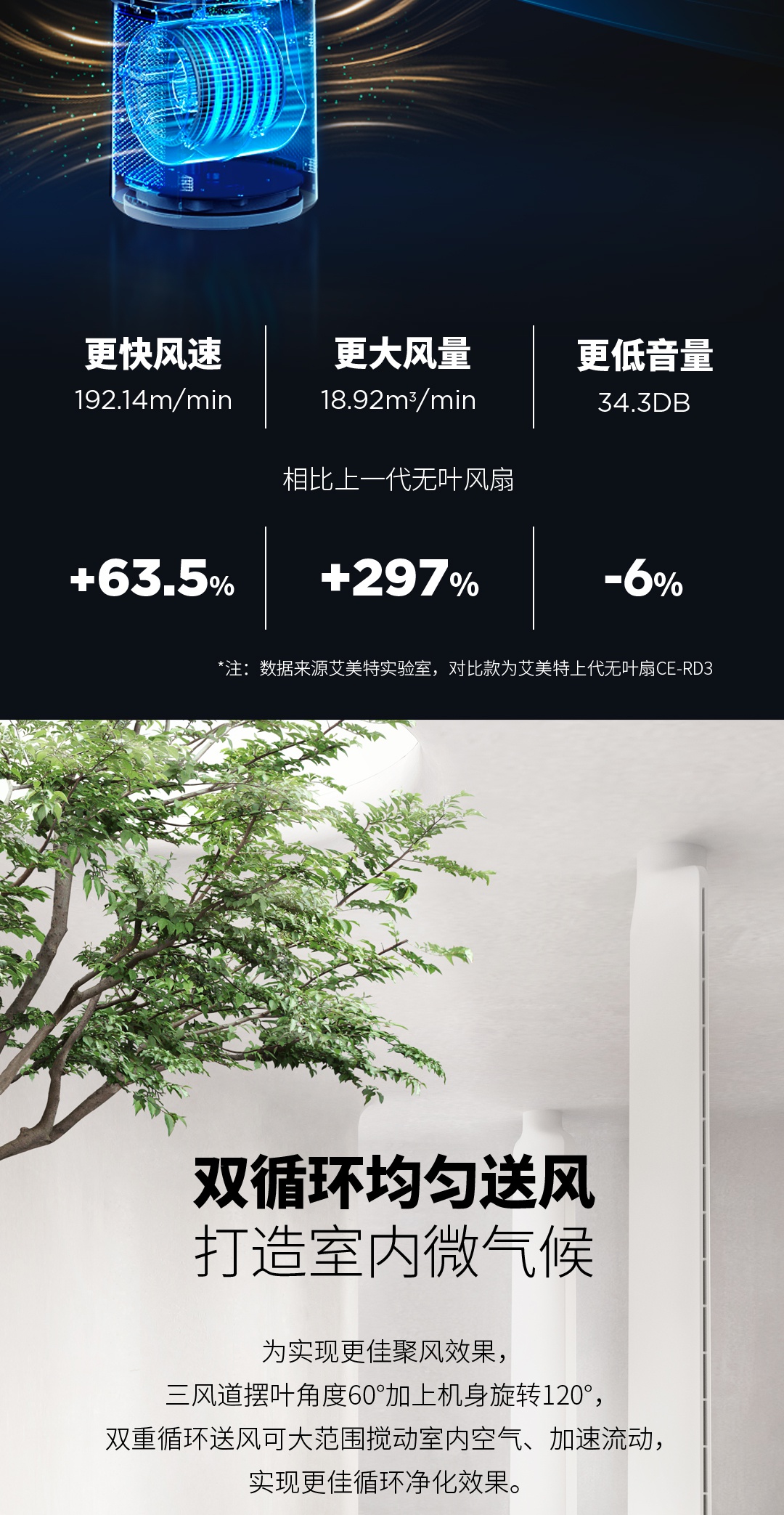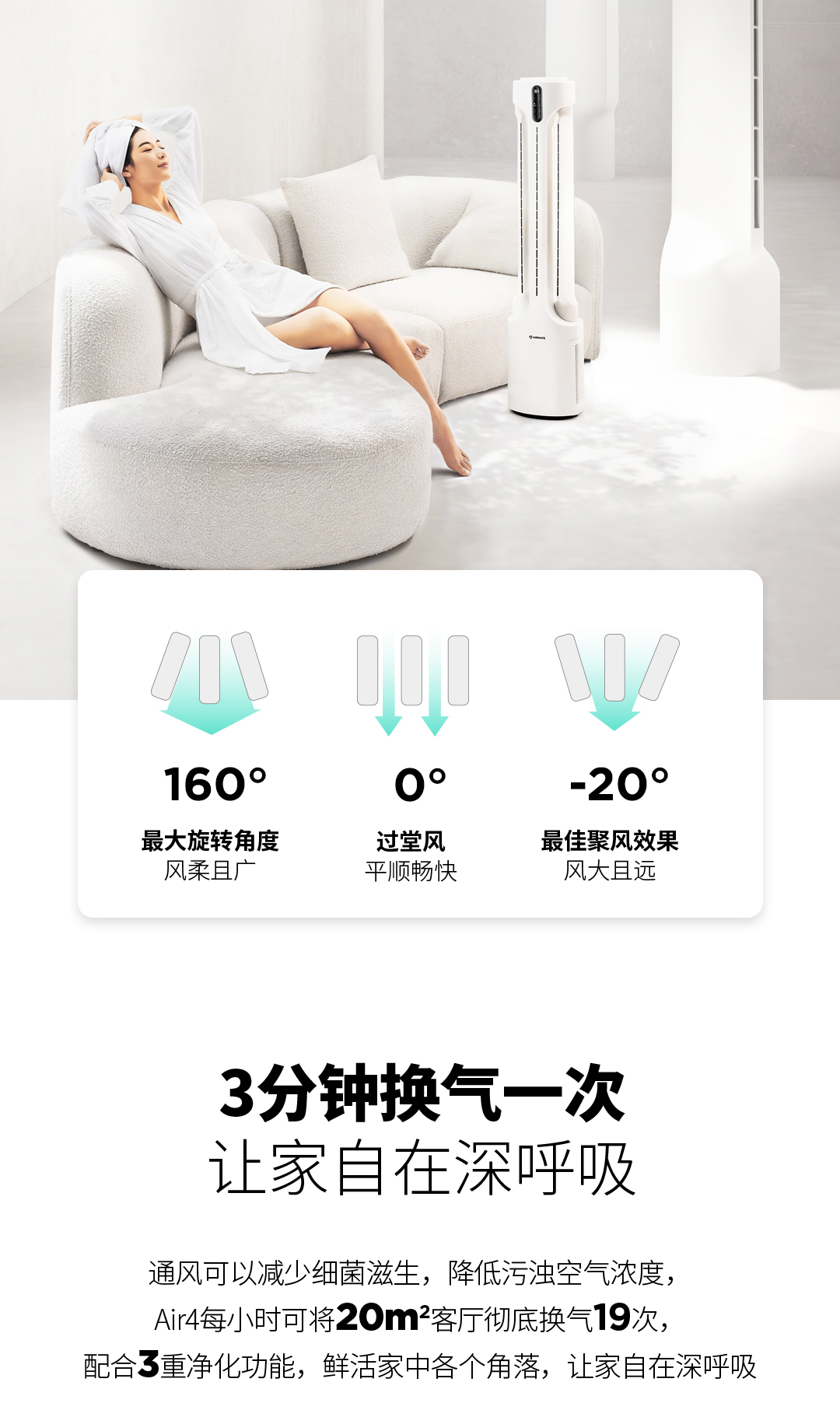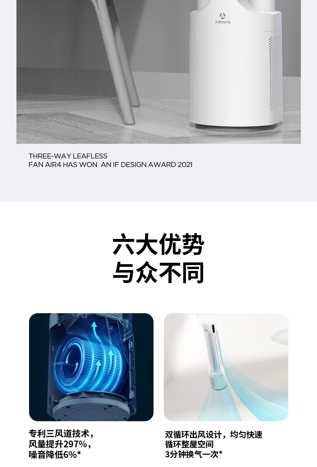 艾美特(Airmate)空气循环扇电风扇家用落地扇无叶空气对流变频节能风扇定时静音立式风扇 AIR4 PRO款-白色