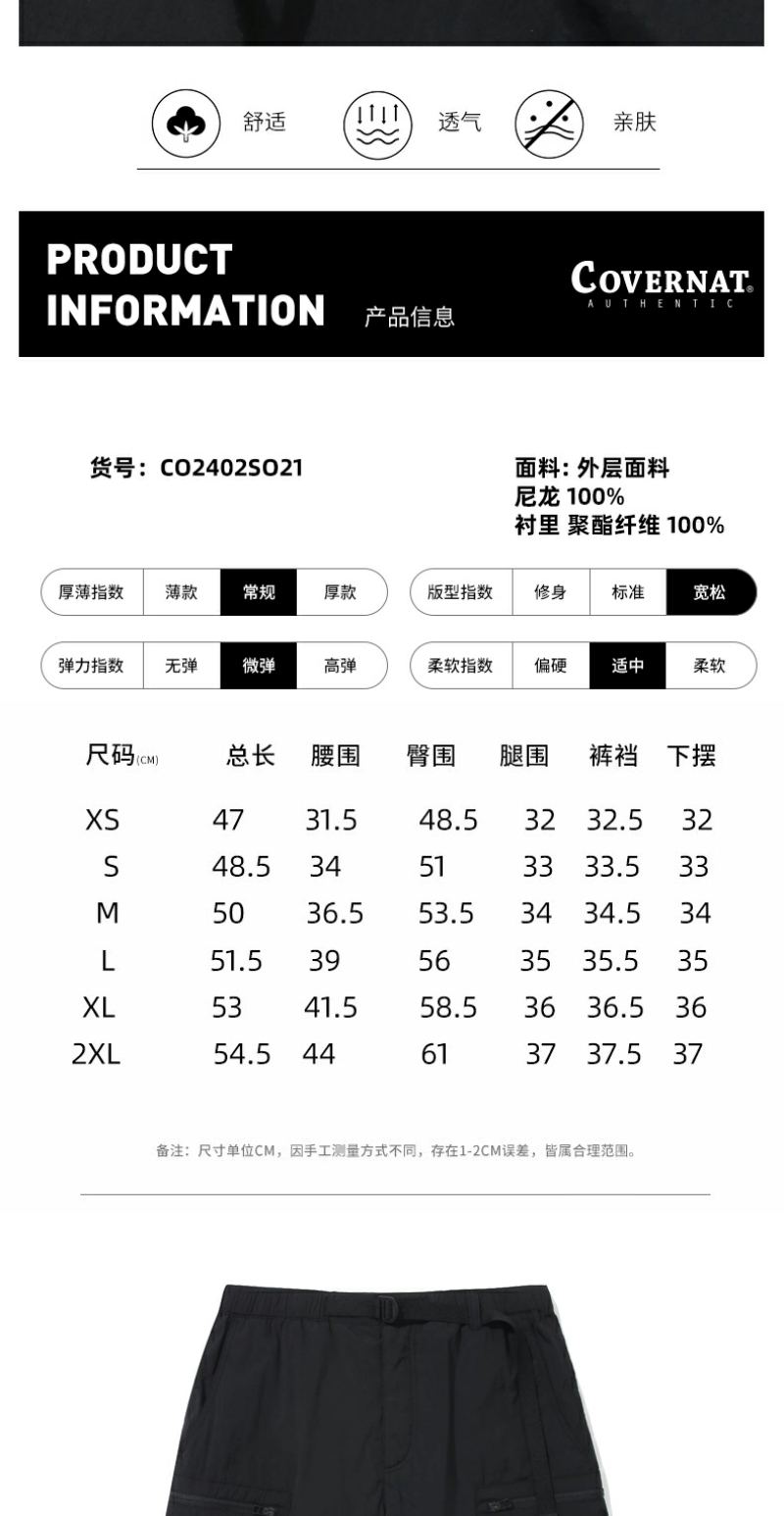 Covernat韩国潮牌高腰短裤潮流时宽松休闲工装裤短裤2024夏季CO2402SO21 商品图2