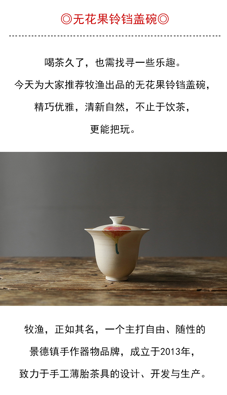 茶香记 无花果铃铛盖碗150ml牧渔清新雅致无花果实惠百搭精巧好用易操作