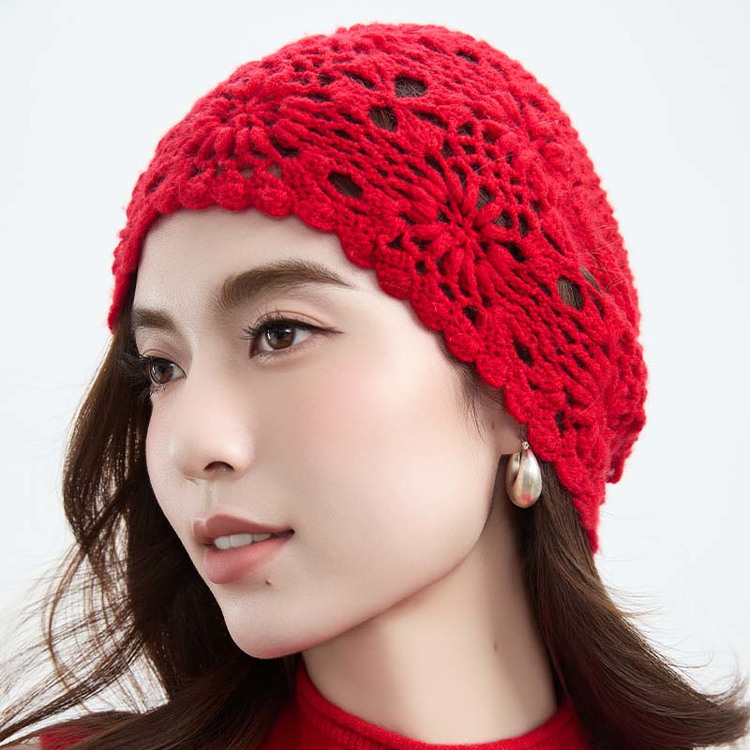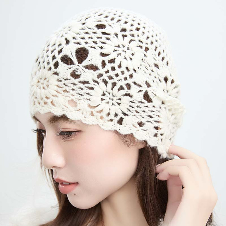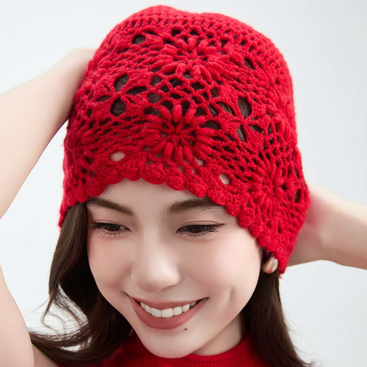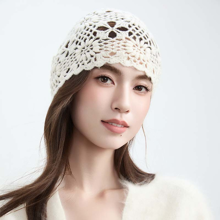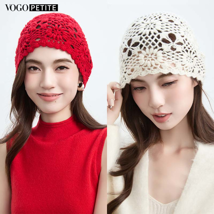 VogoPetite 70%羊毛30%羊绒 手工针织钩花镂空堆堆帽子 BP141D0014