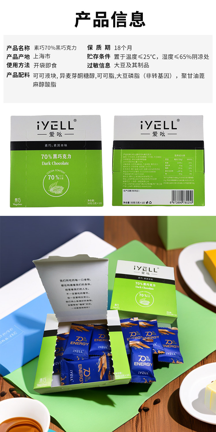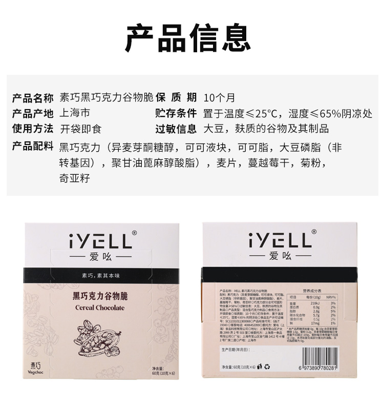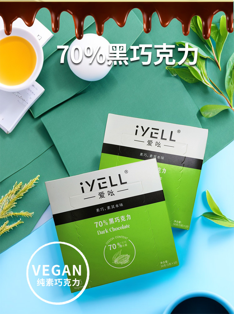 【88折】植物纯素巧克力 | 草莓燕麦海盐黑巧白巧 谷物脆 办公室代餐零食 伴手礼 iYELL爱吆