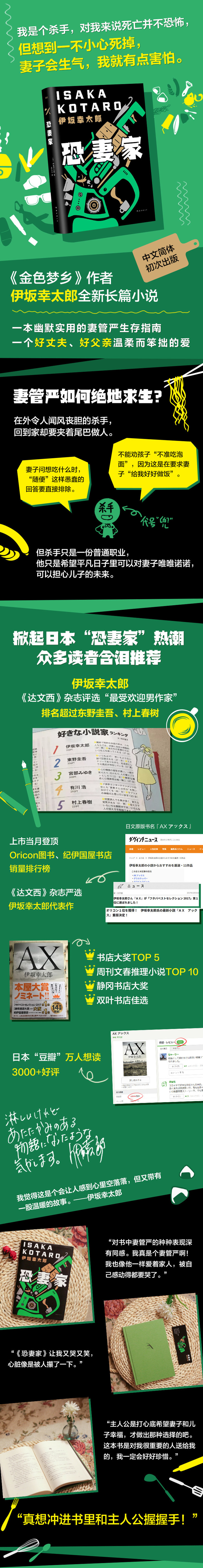 《恐妻家》的人物、情节设定都别出心裁,描写的是杀手故事,却充满人情味,看着看着竟热泪盈眶了。——日本bookmeter网站读者