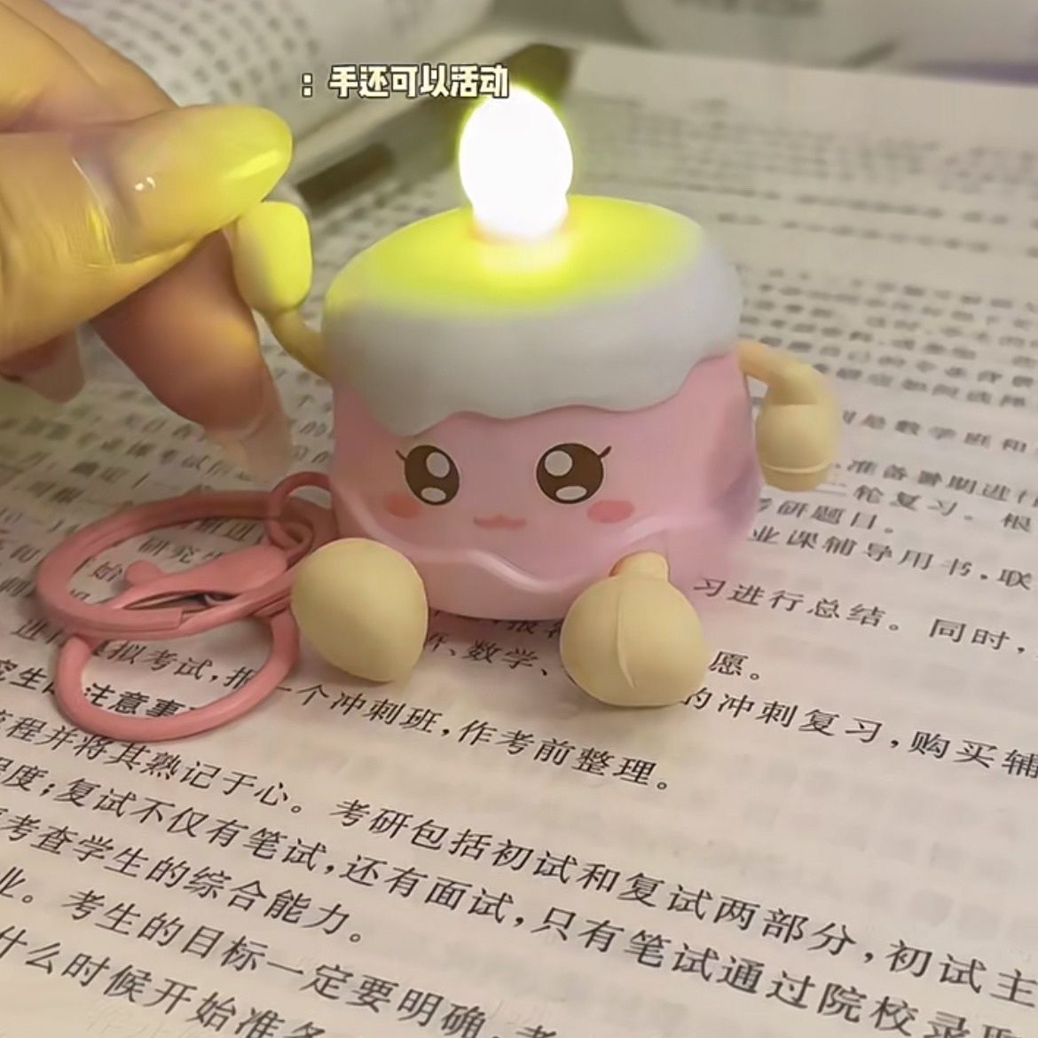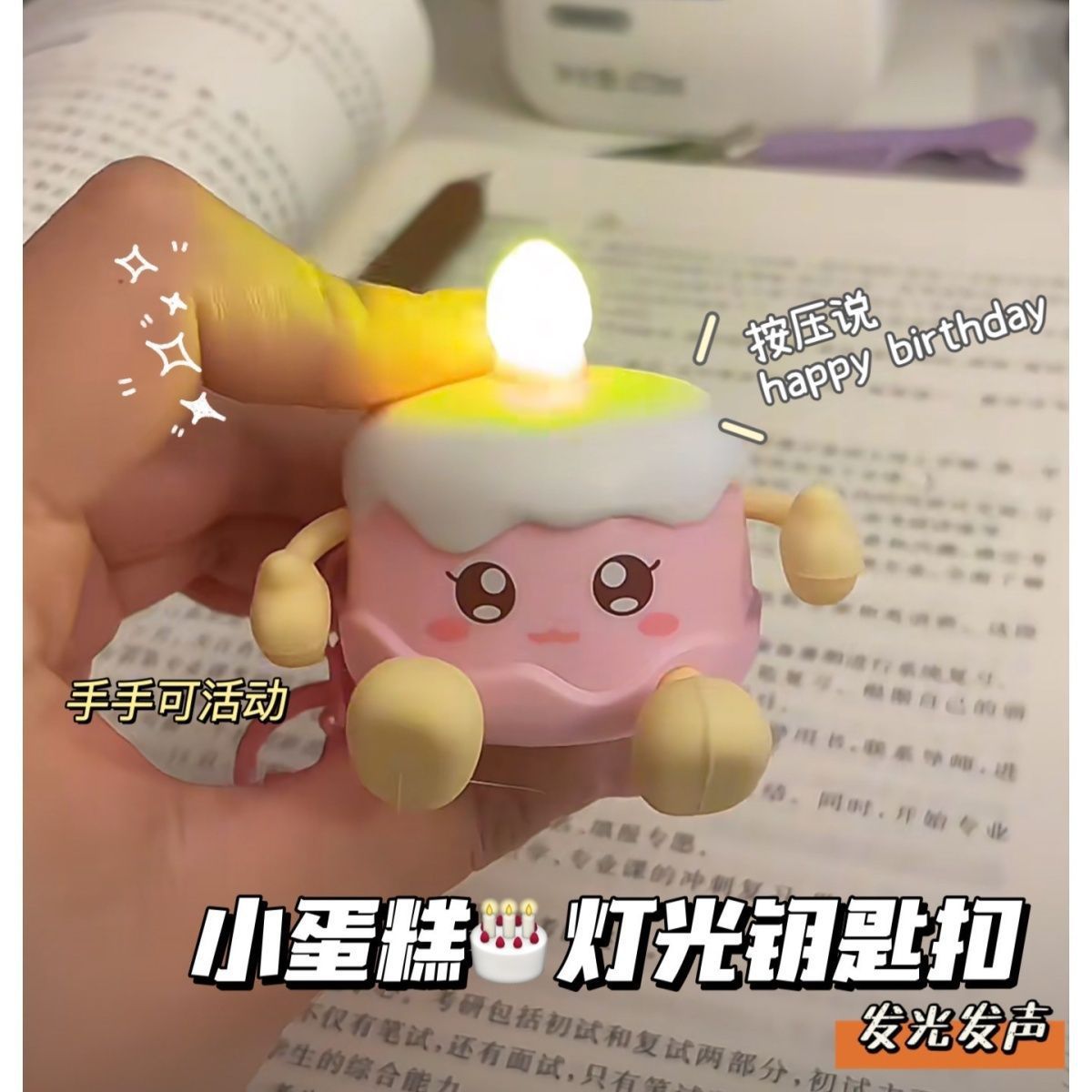 【生日蛋糕造型,亮灯唱歌~】亮灯发声生日蛋糕小夜灯钥匙扣 情侣礼物挂件 创意挂饰 生日礼物首选!-QQ