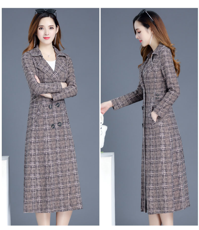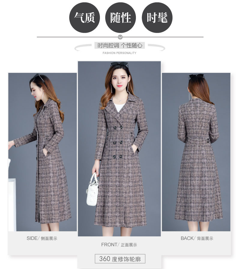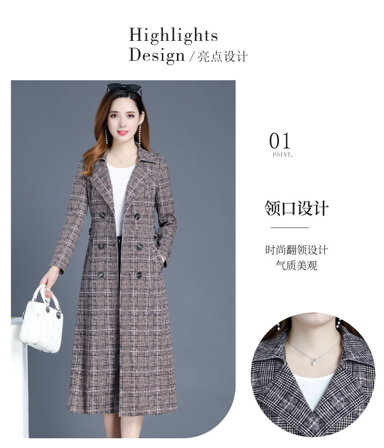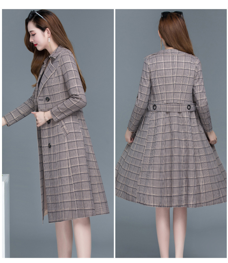 YX-XQD-YMJ03A格纹风衣外套女中长款2020秋季新款流行百搭小个子过膝大衣