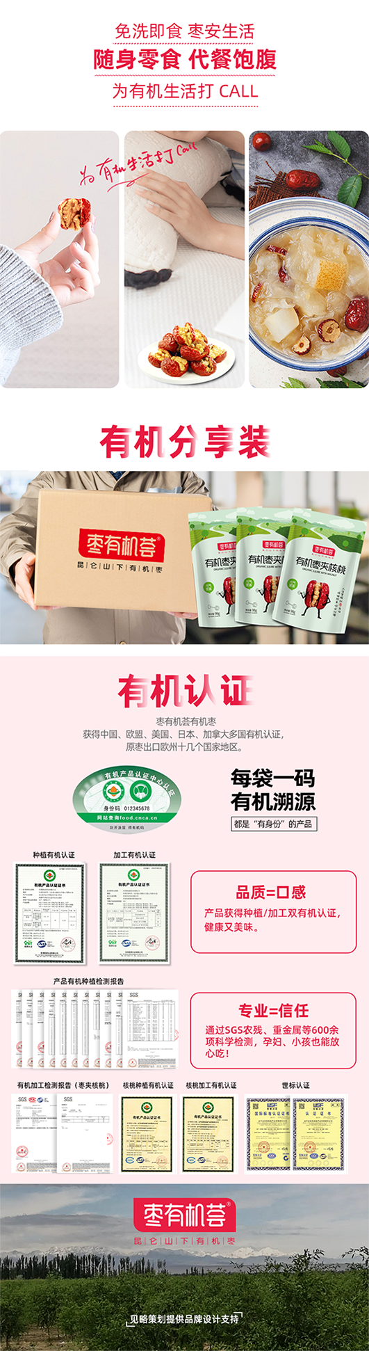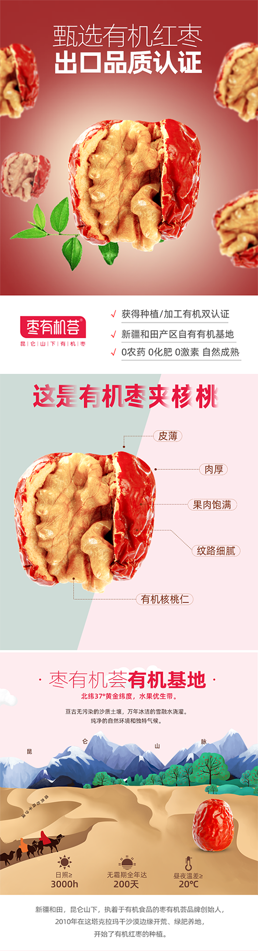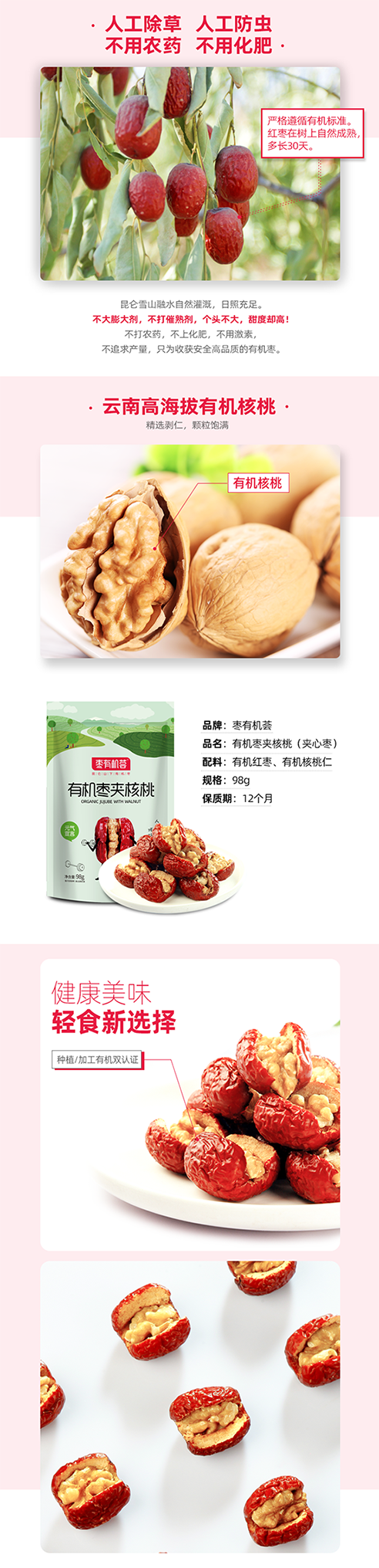 杞冠臻选 |枣有机荟 有机枣夹核桃 出口品质 双有机认证 免洗即食代餐饱腹 98g/袋 3袋包邮