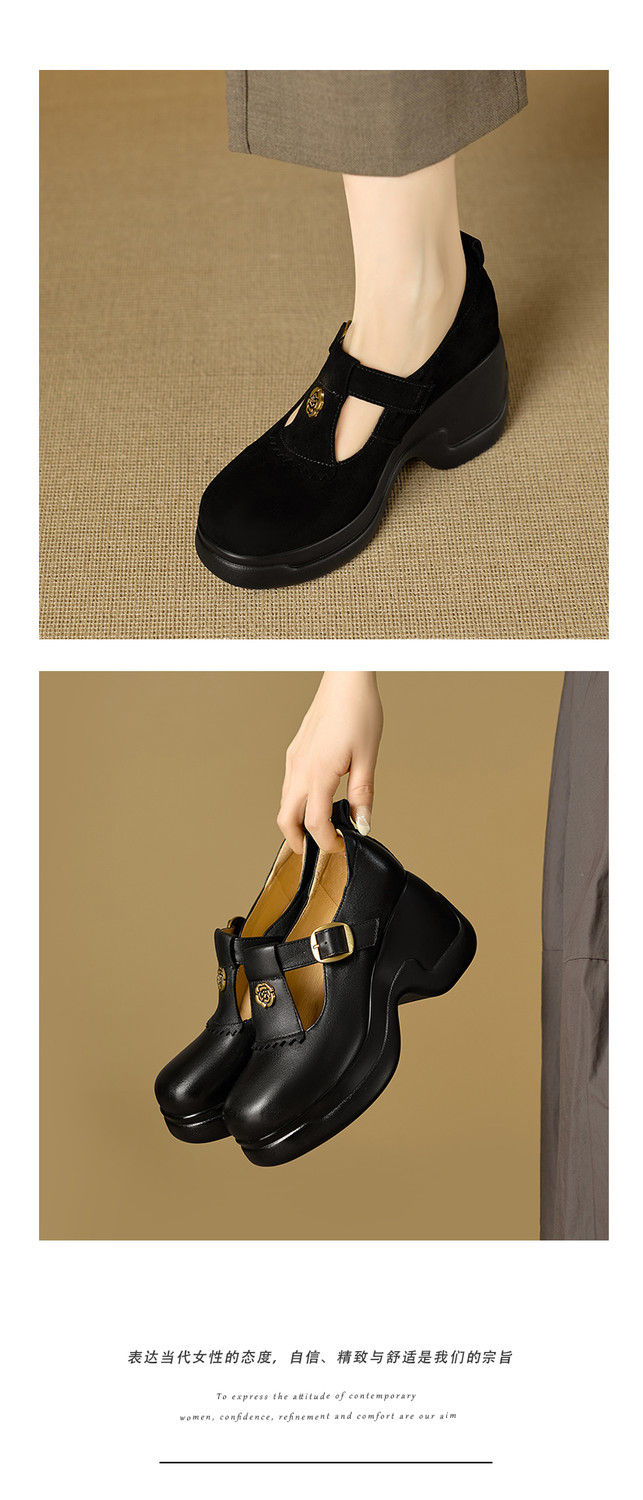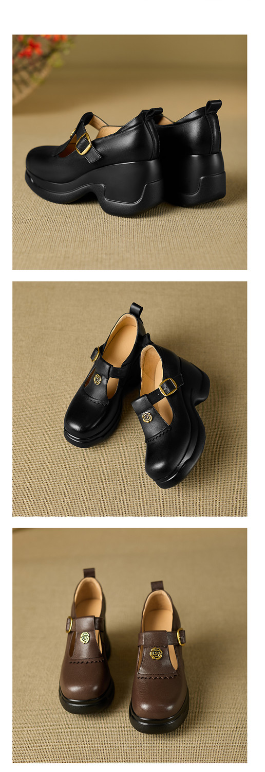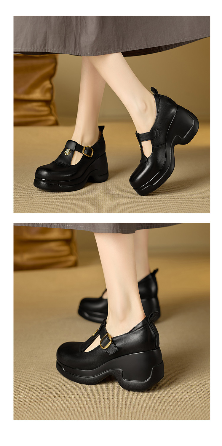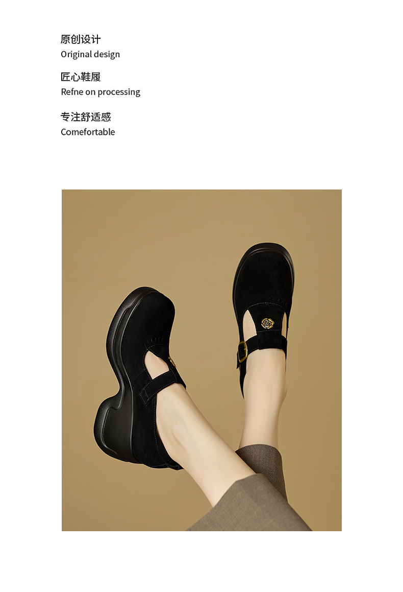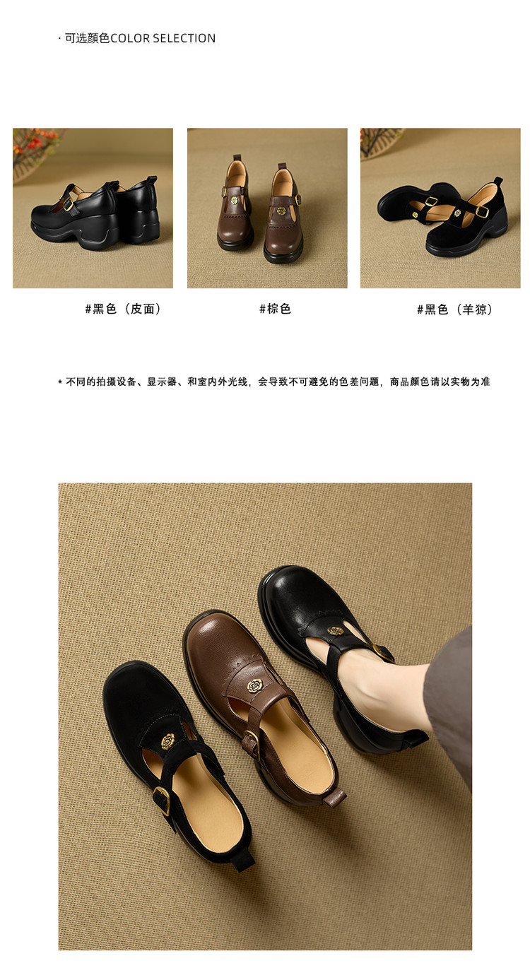 【预售5天】厚底真皮复古防水台山茶花圆头增高舒适学院风松糕鞋YJY&K20-6