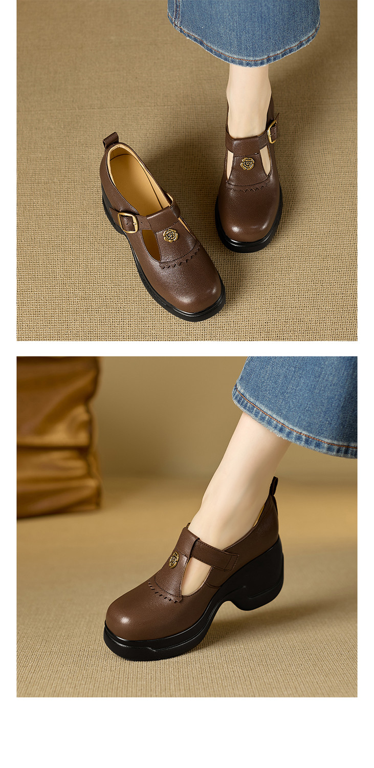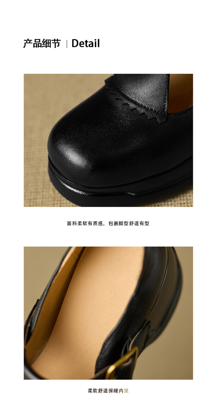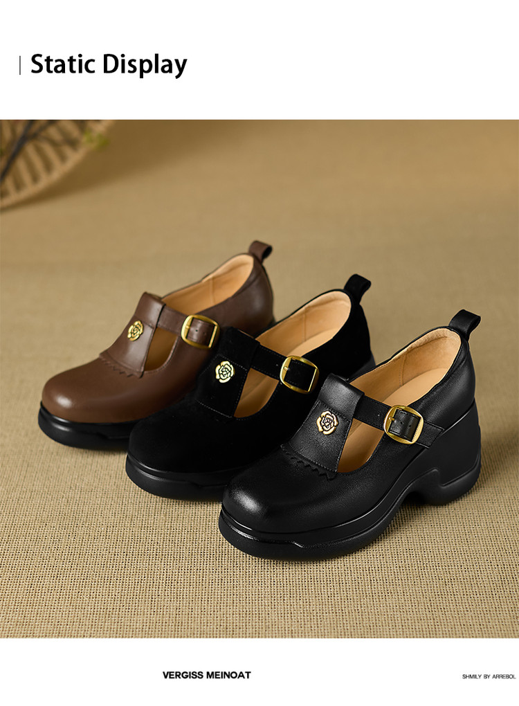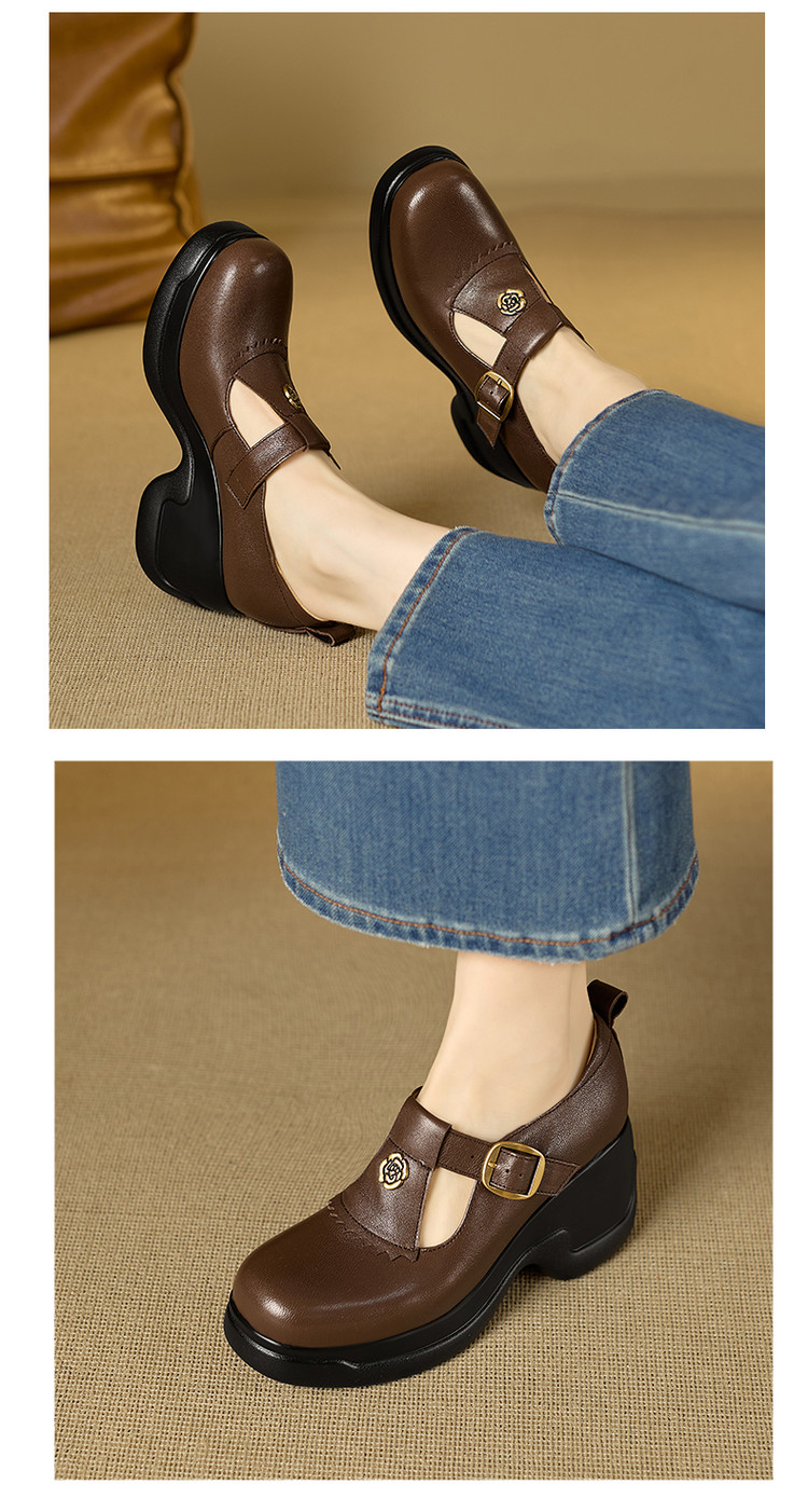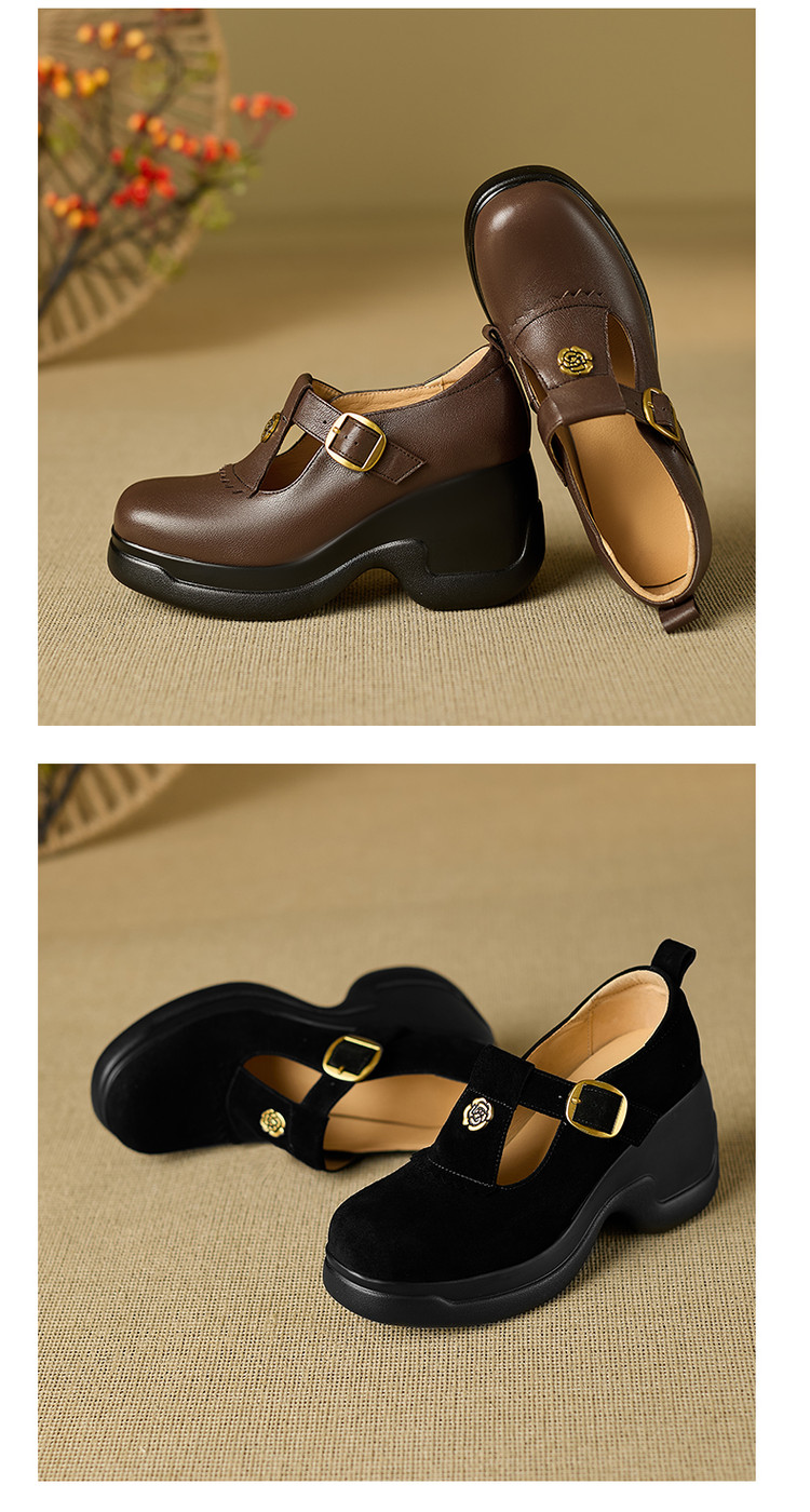 【预售5天】厚底真皮复古防水台山茶花圆头增高舒适学院风松糕鞋YJY&K20-6