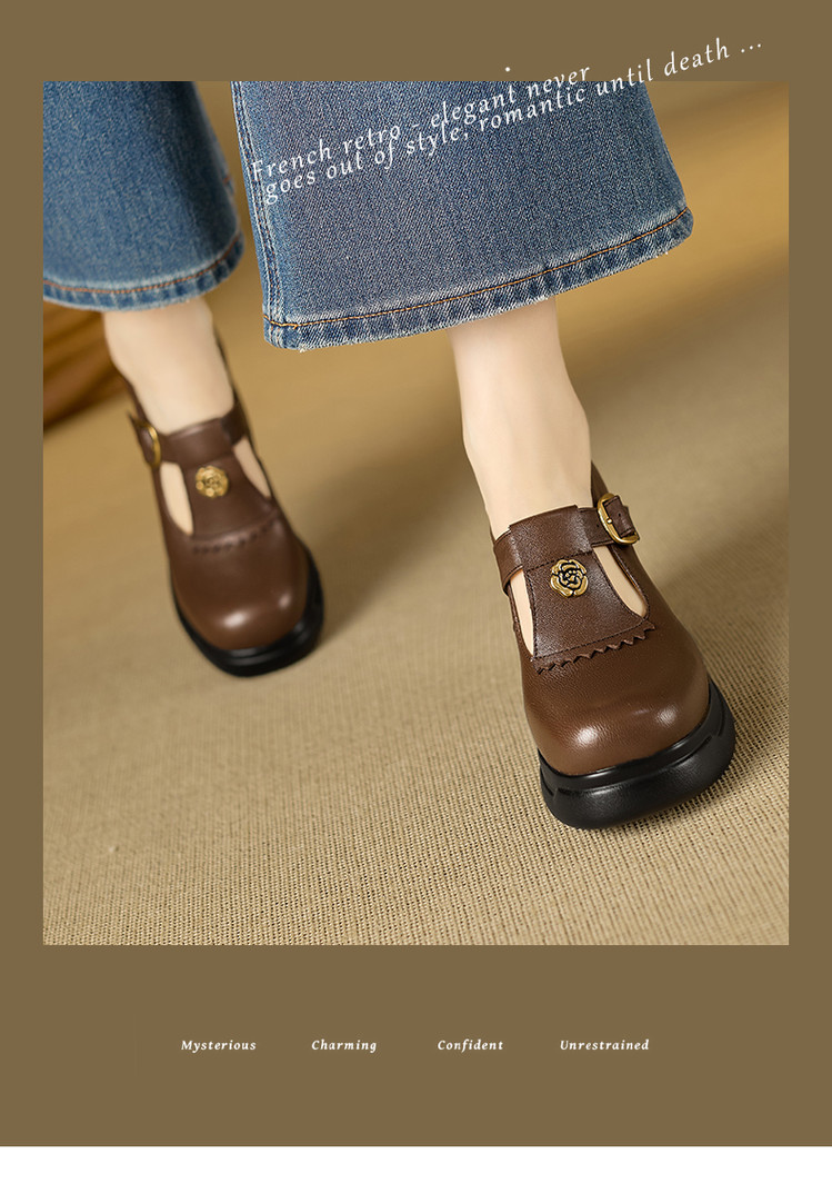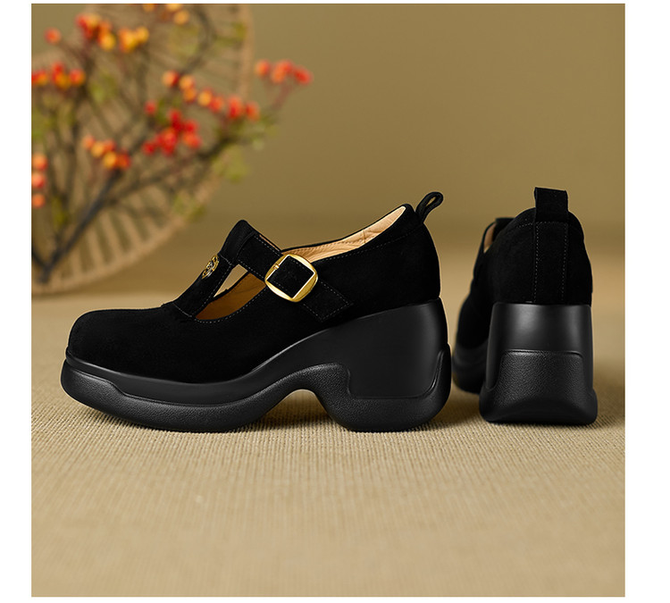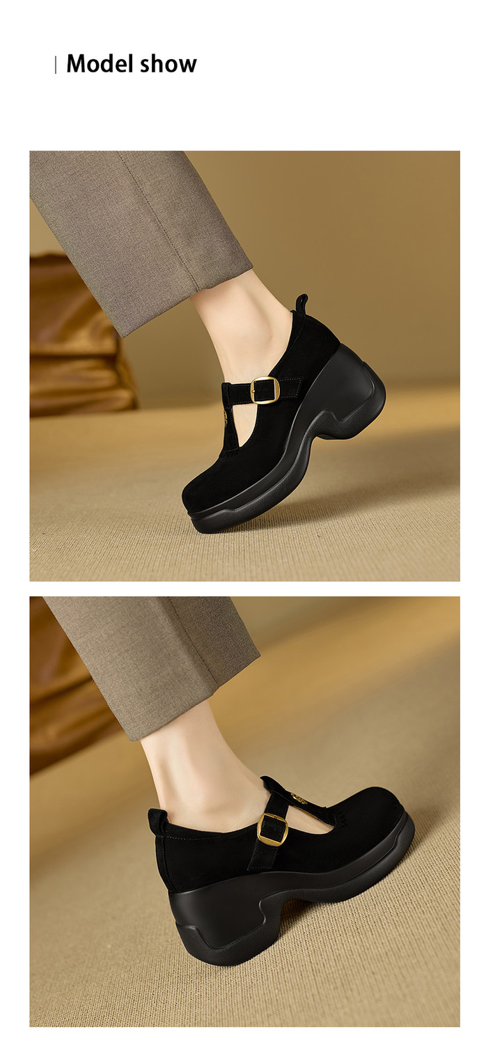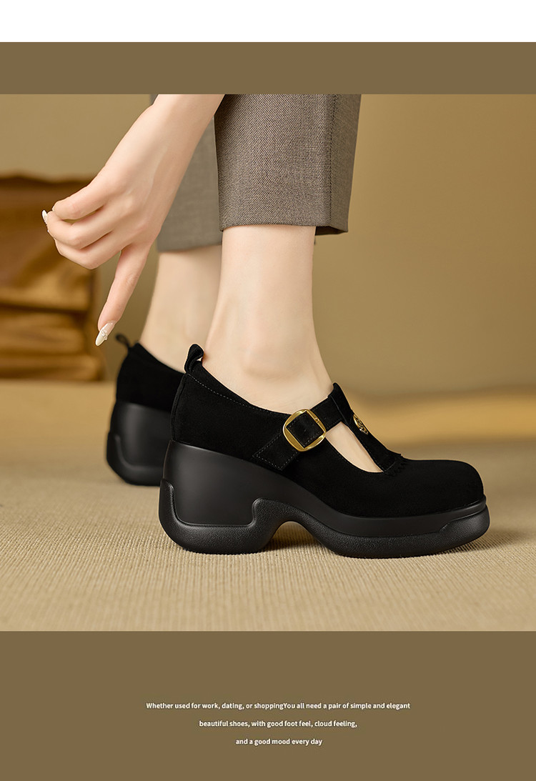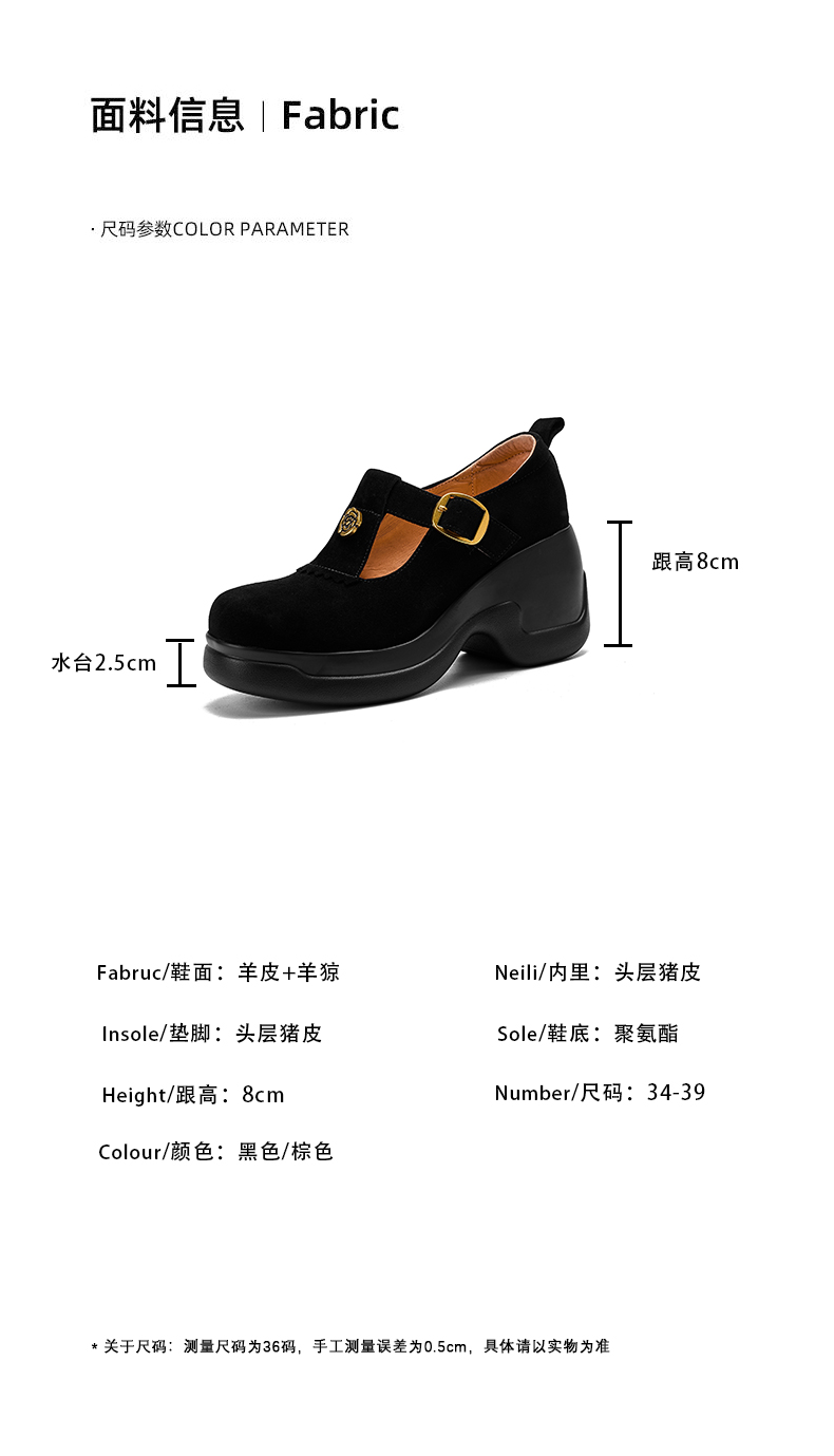 【预售5天】厚底真皮复古防水台山茶花圆头增高舒适学院风松糕鞋YJY&K20-6