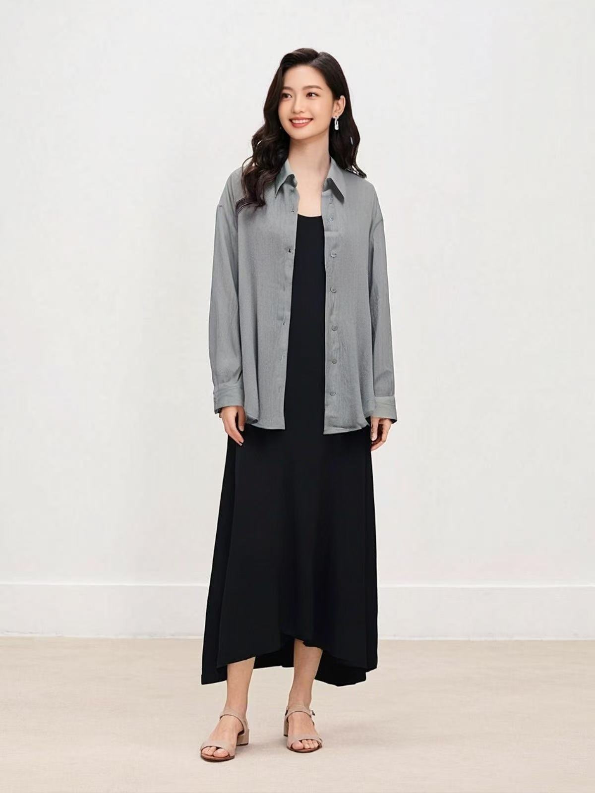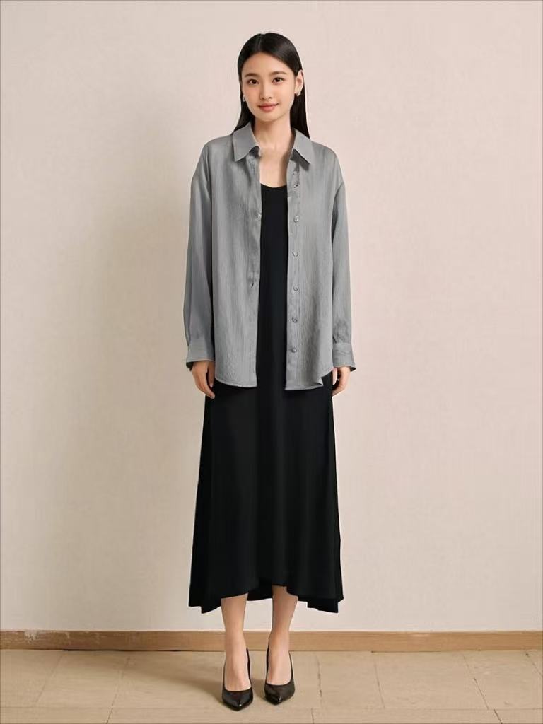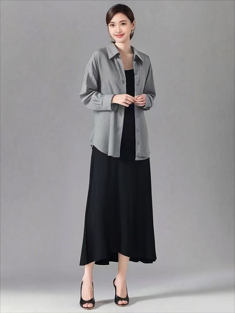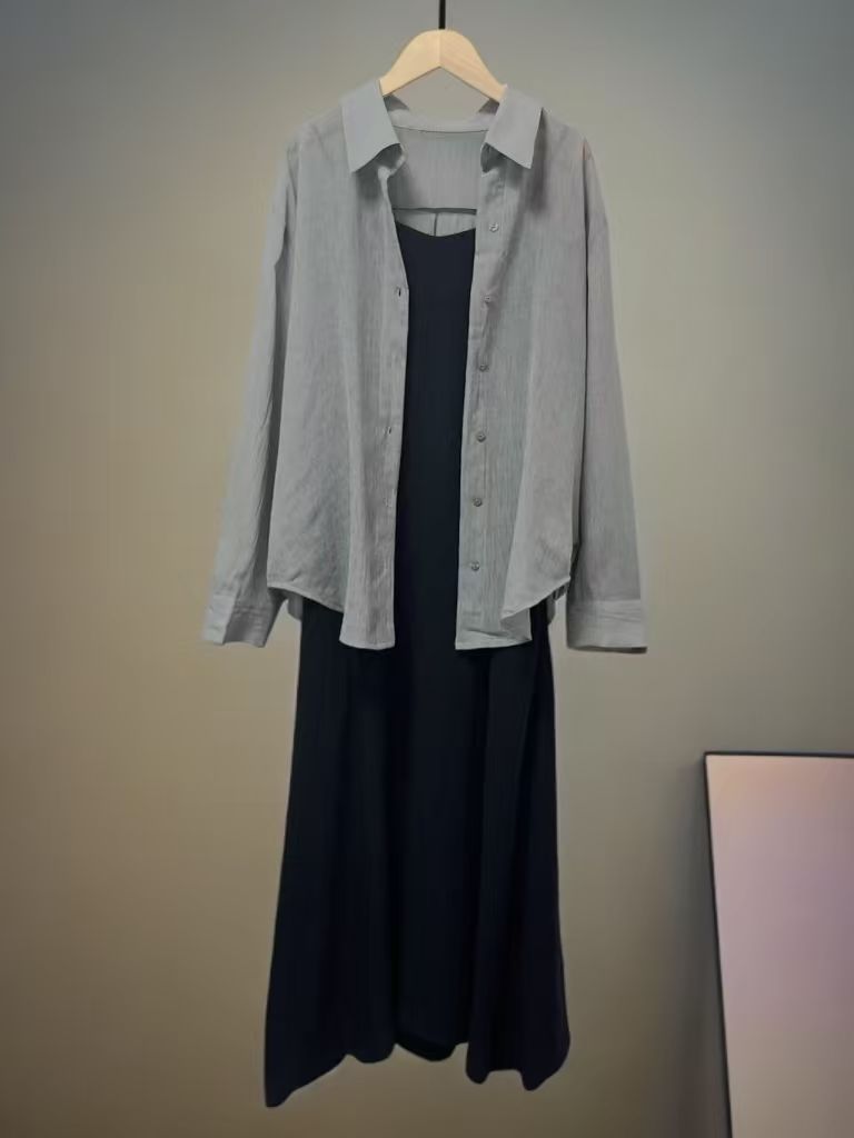 套装【MYBL】8635仿棉麻肌理纹V领吊带裙衬衫两件套-喜出