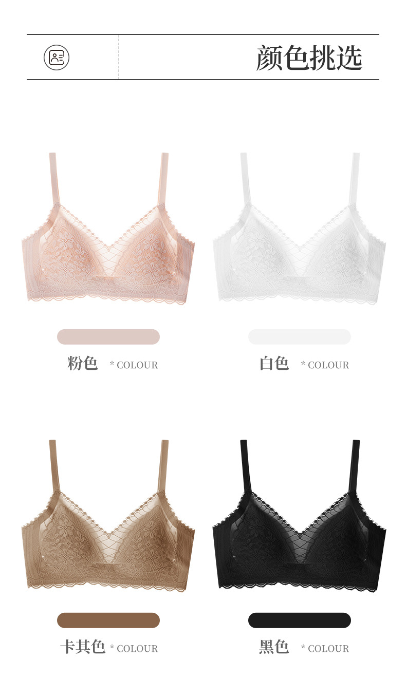 雀说 舒适大胸显小法式性感蕾丝无痕内衣女无钢圈文胸罩薄HTS2308