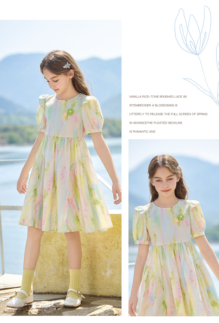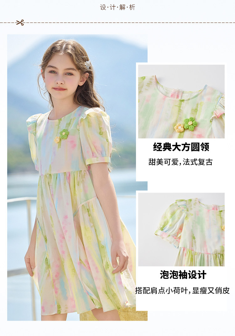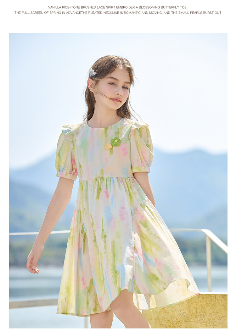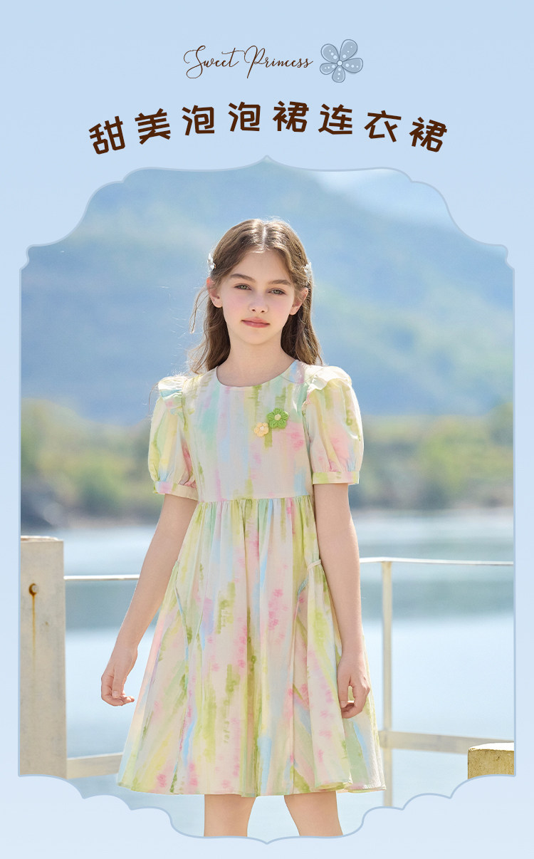 【孩提精灵】1065 甜美彩色泡泡裙童连衣裙-喜出