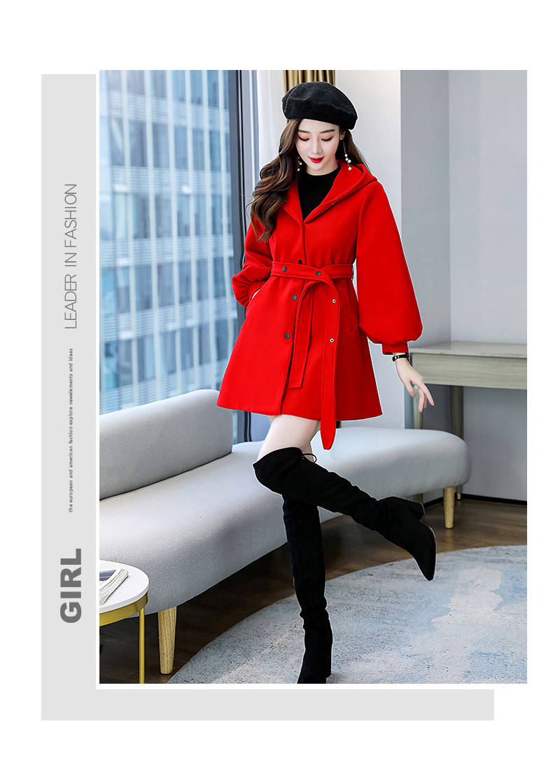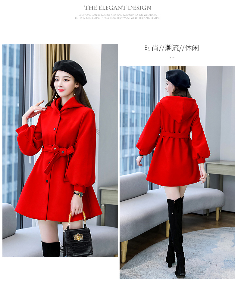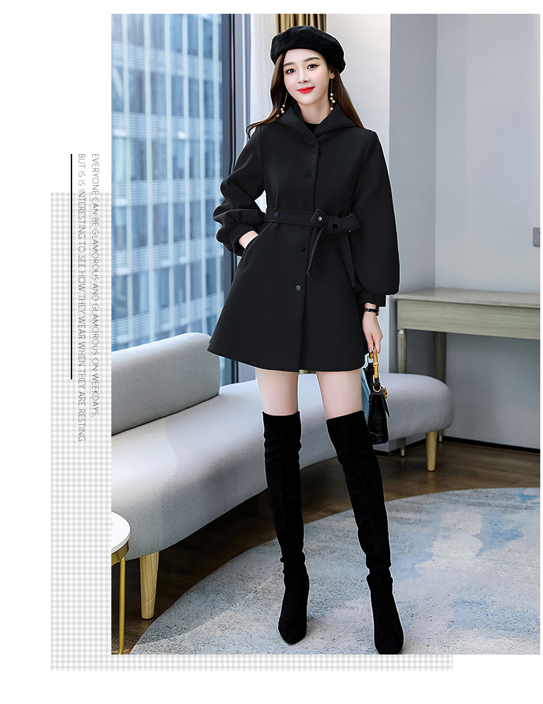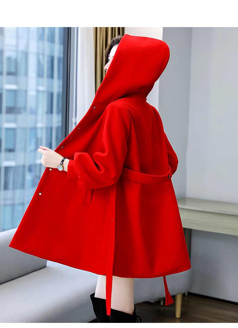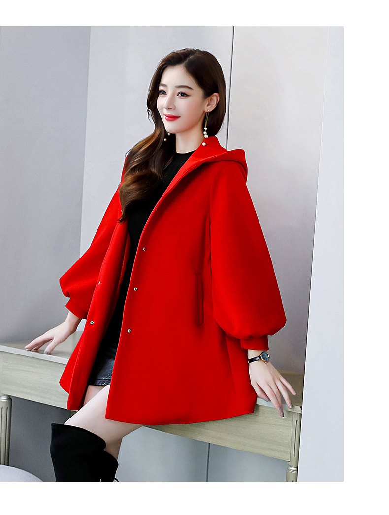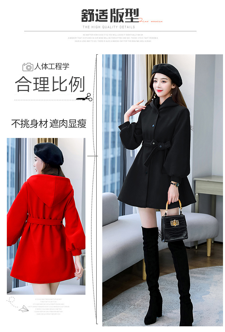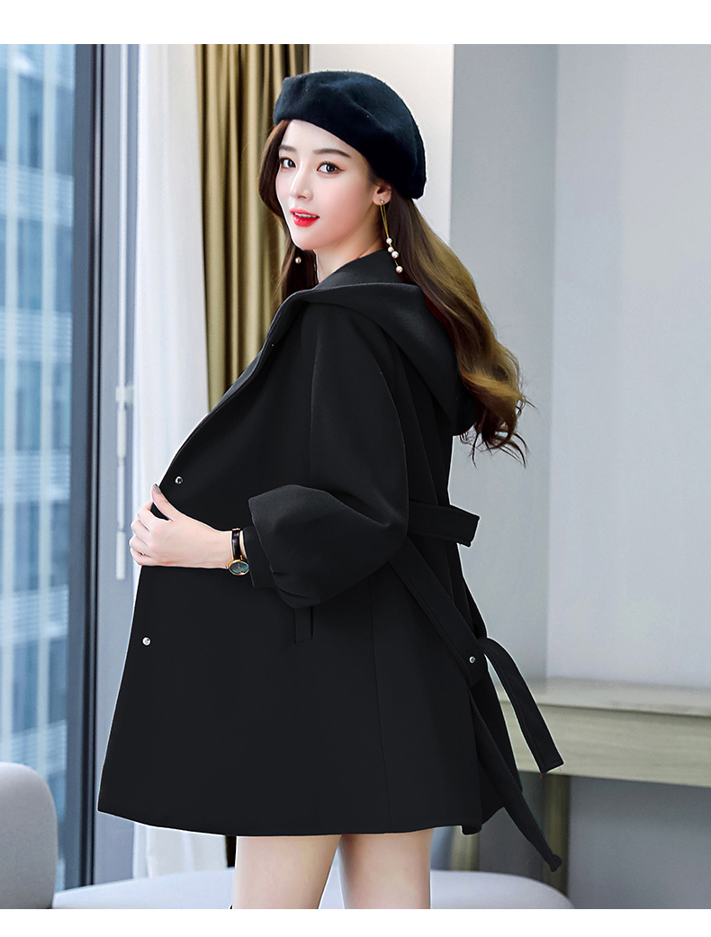 纯色简约,双排扣中长款立领九分袖时尚斗篷大衣HR-HMQY2129