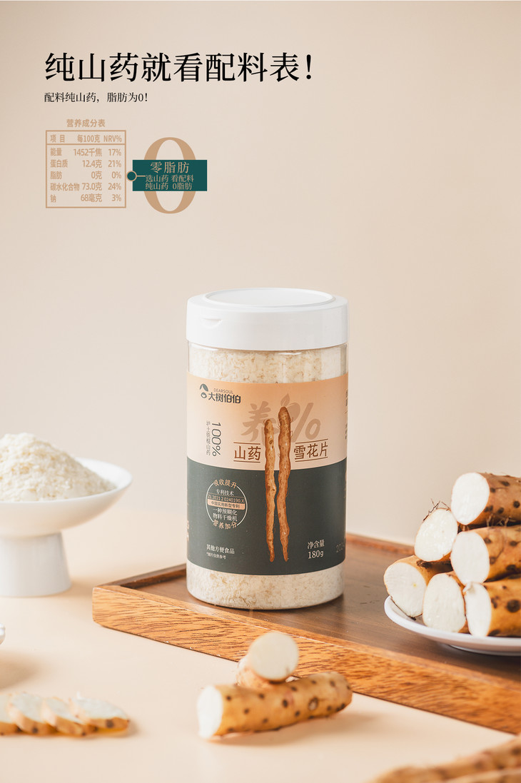 大树伯伯 纯铁棍山药雪花片 180g/罐 即食早餐 冲饮代餐 营养饱腹
