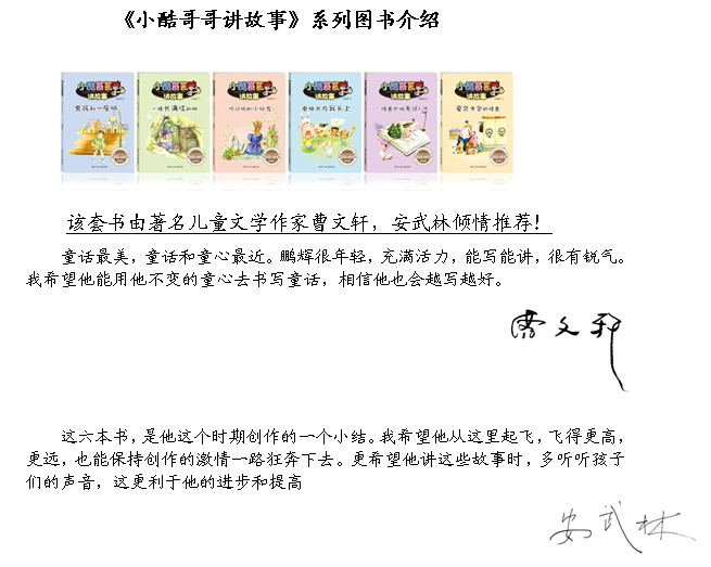 安鹏辉,小朋友们亲切地称呼他是“小酷哥哥”,老师和家长们喜欢称呼他是“童话男神”。他是一个可爱的童话作家,也是一个风趣的儿童阅读推广人。他是*国寓言文学研究会会员、山西省作家协会会员、《小学生拼音报》编辑、著名儿童阅读推广人,2015年“年度点灯人”候选人,也是北京师范大学基础教育对外合作办学部特邀讲座嘉宾。他讲课风趣、幽默,态势语言丰富,深得老师和孩子喜爱,曾受邀在河南、四川、云南、重庆、黑龙江等地为小朋友们推广阅读数百场。一直以来,小酷哥哥秉承的理念就是:“用故事推动阅读”的理念,希望通过他的创作和阅读推广,把更多科学的阅读理念传递给孩子和家长。