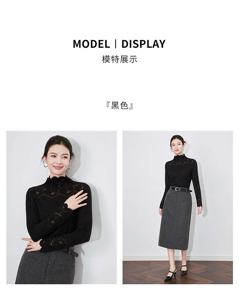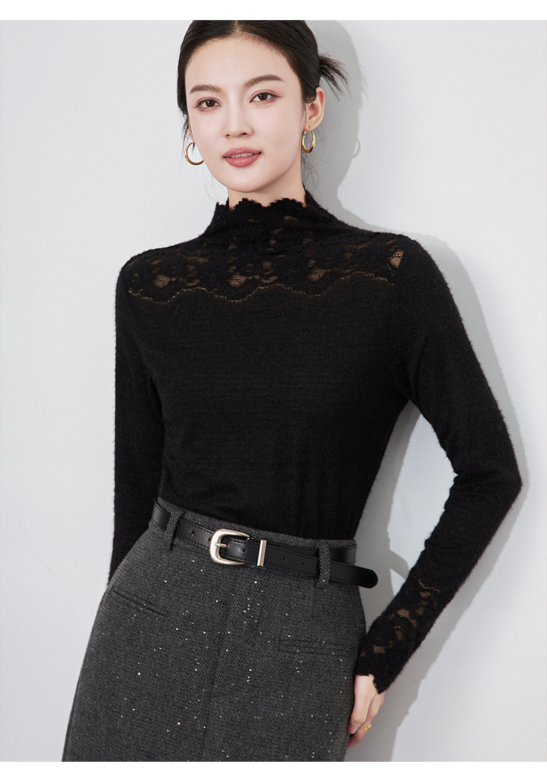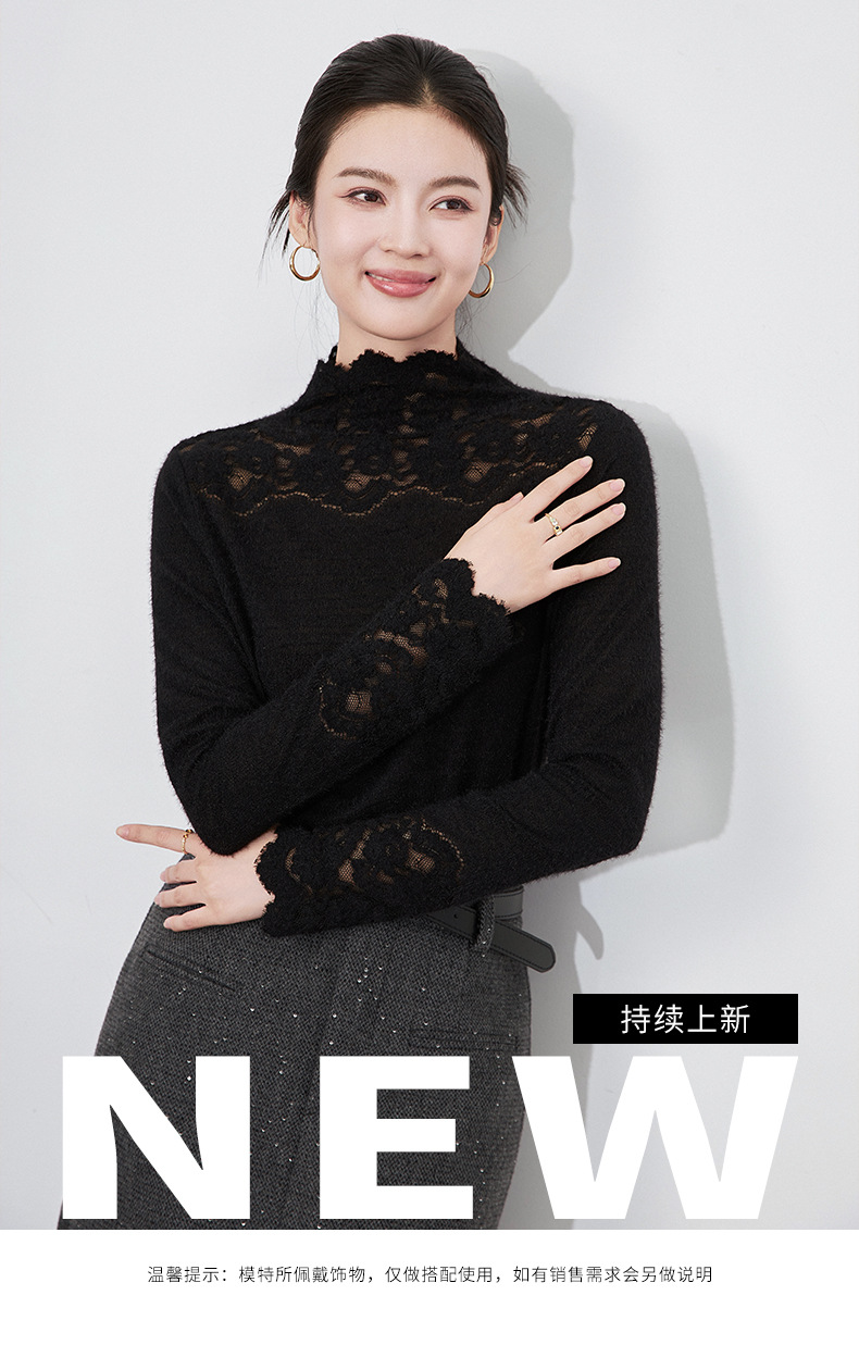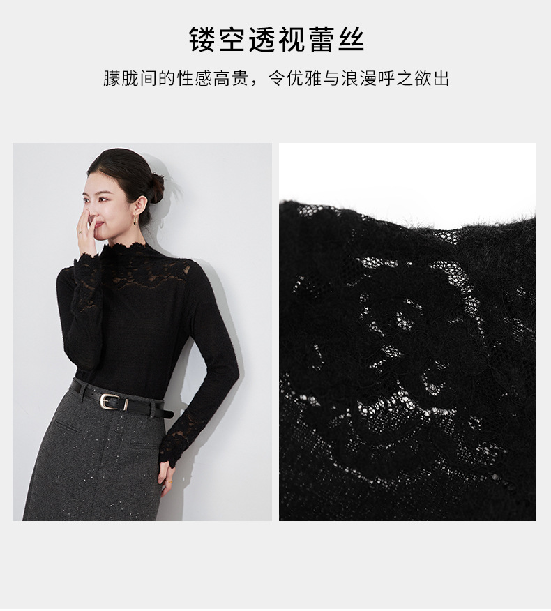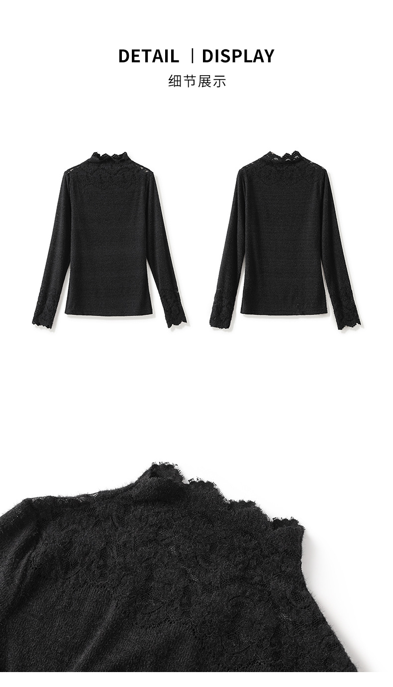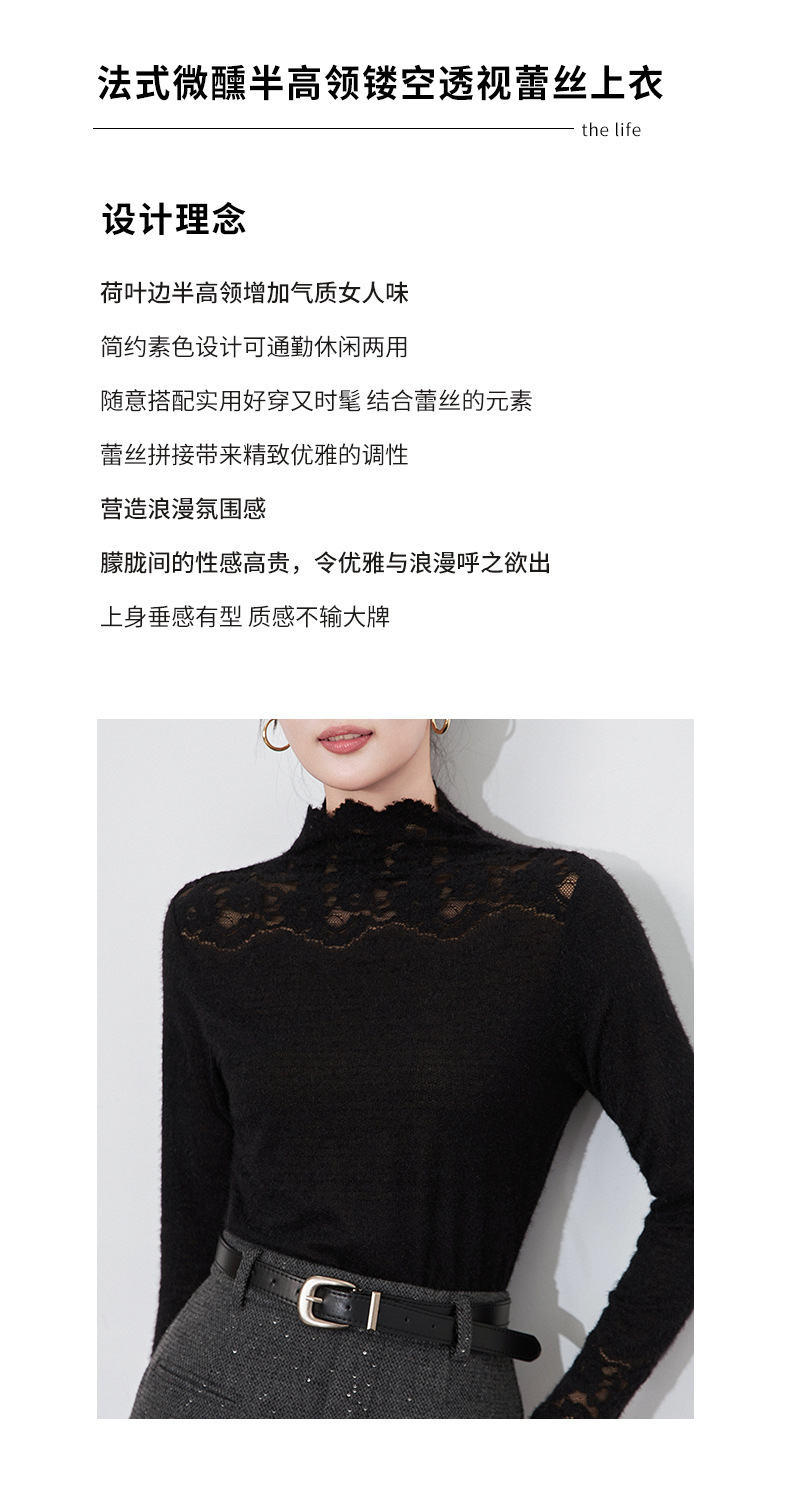 【高货wl】全新升级【铂金会员174/天猫229/差价55】(04638) 洛诗琳法式优雅镂空蕾丝拼接花边打底衫洋气显瘦针织衫
