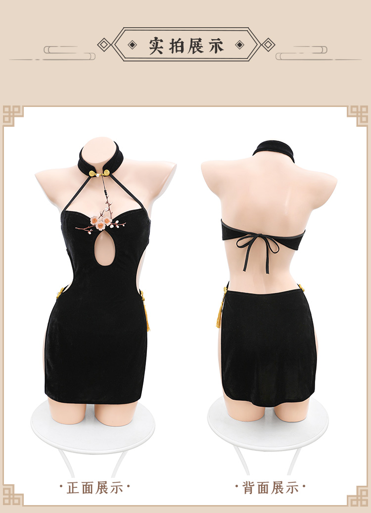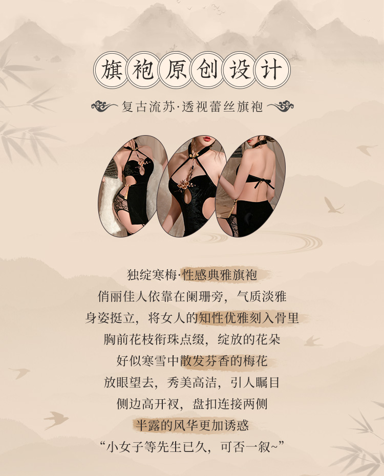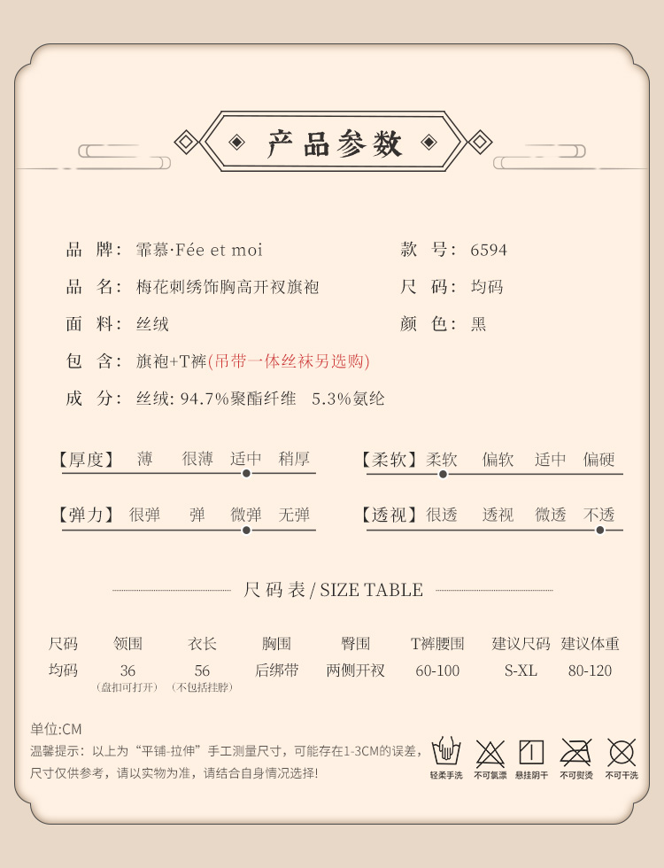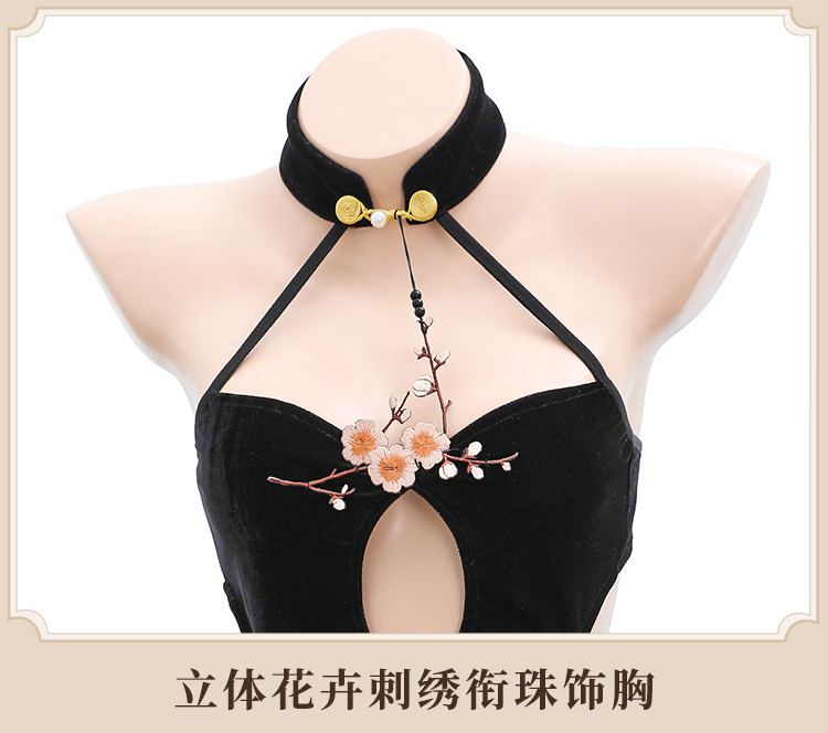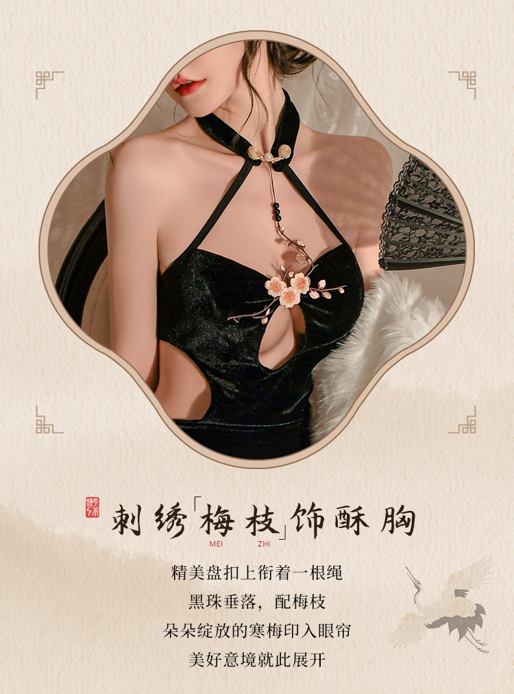 【中式露背】霏慕 梅花刺绣饰胸高开衩旗袍6594