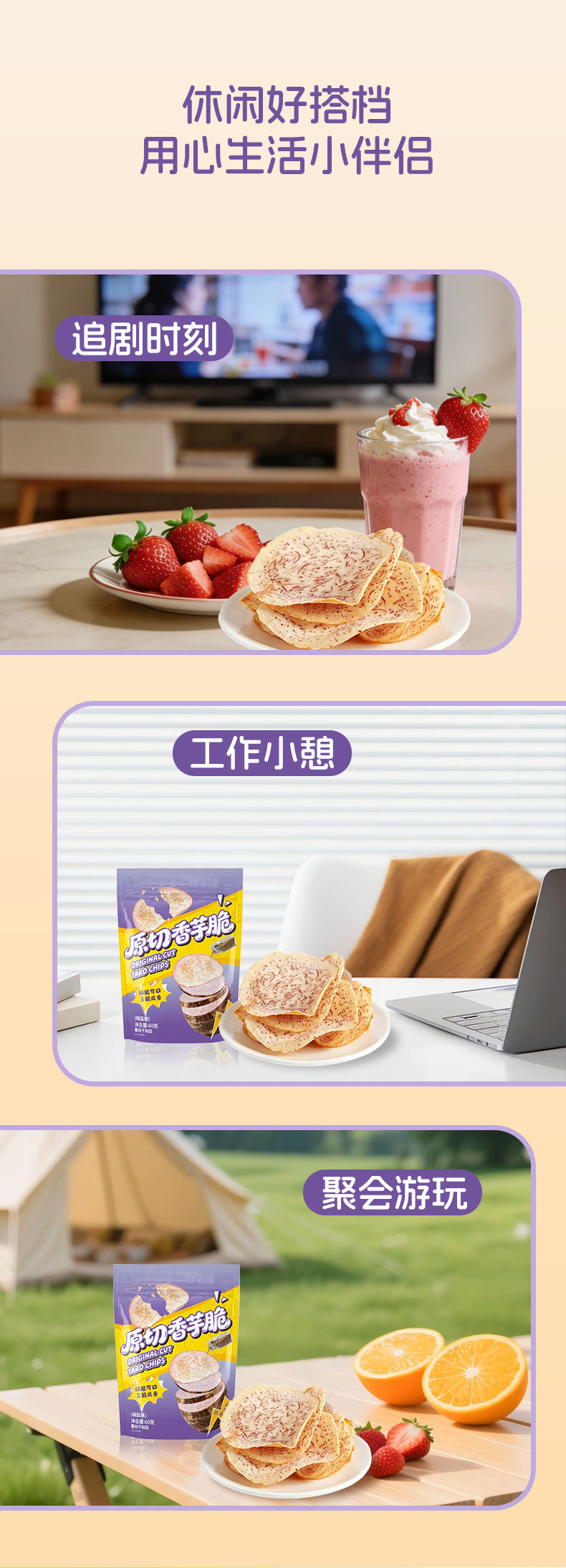 【酥酥脆脆!轻负担】原切芋头片椒盐味香芋片即食薯片条办公室解馋小零食休闲食品小吃。xb