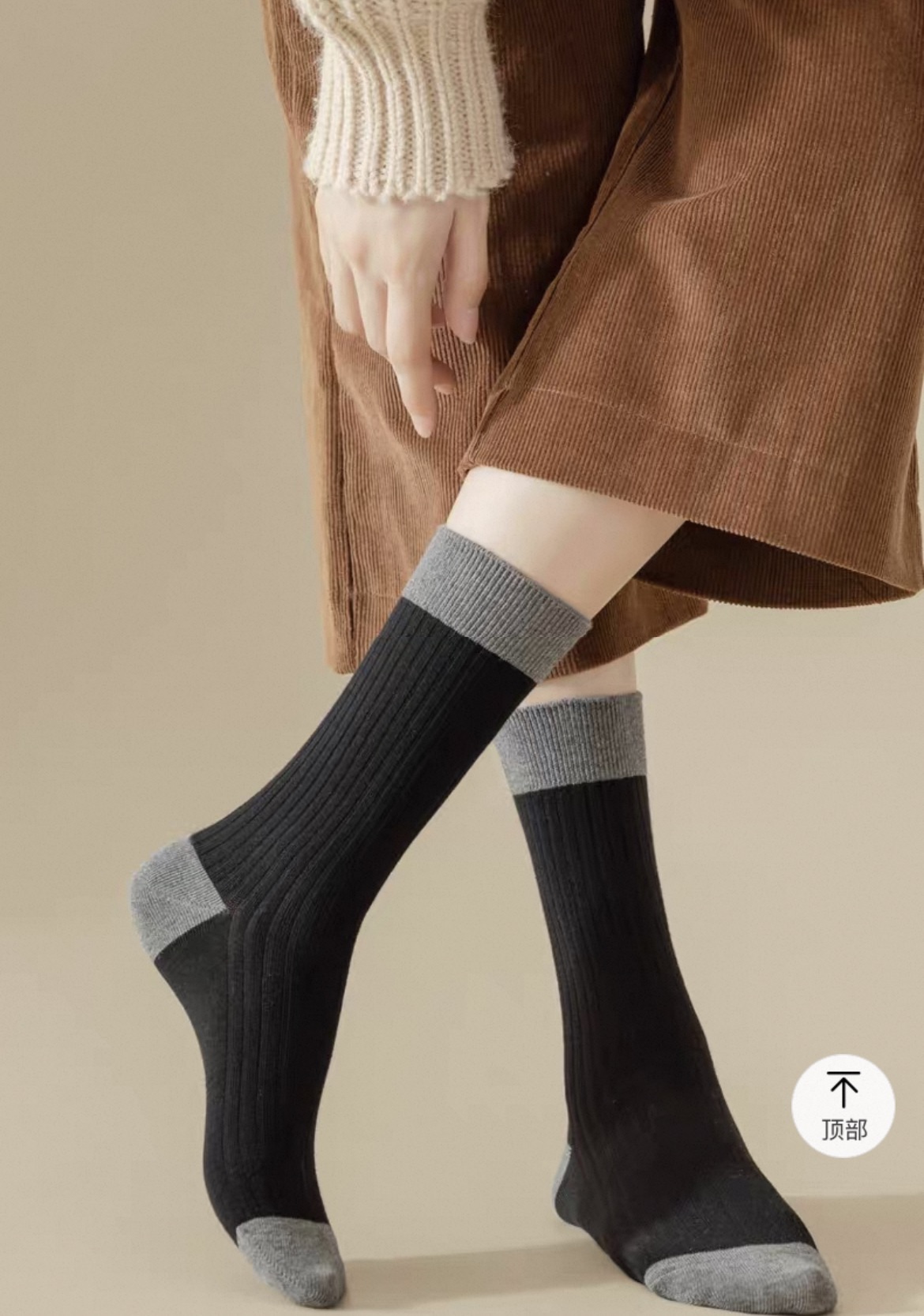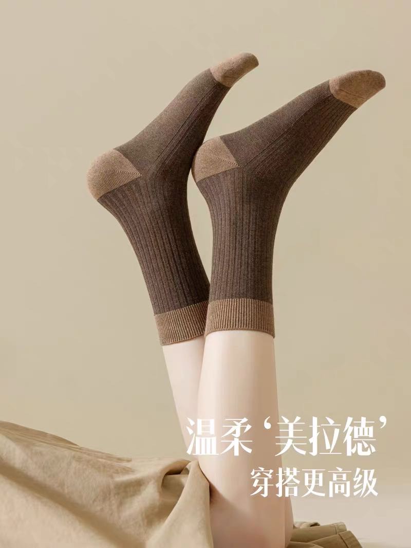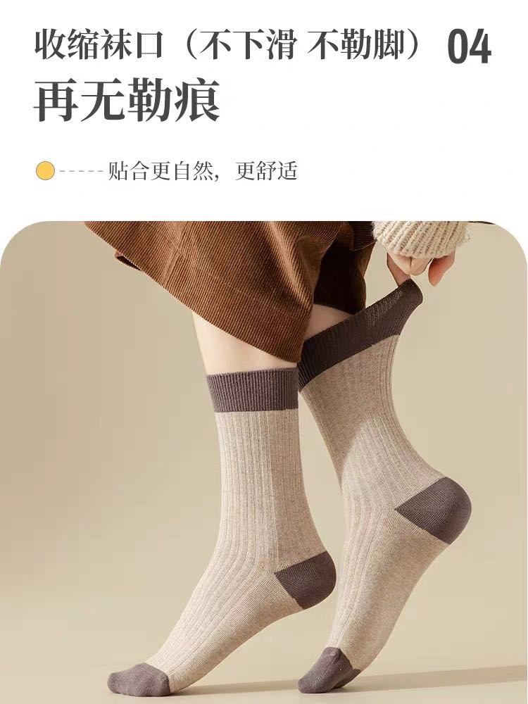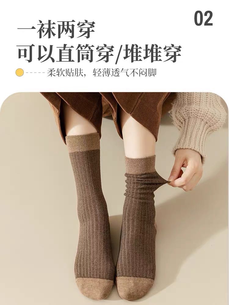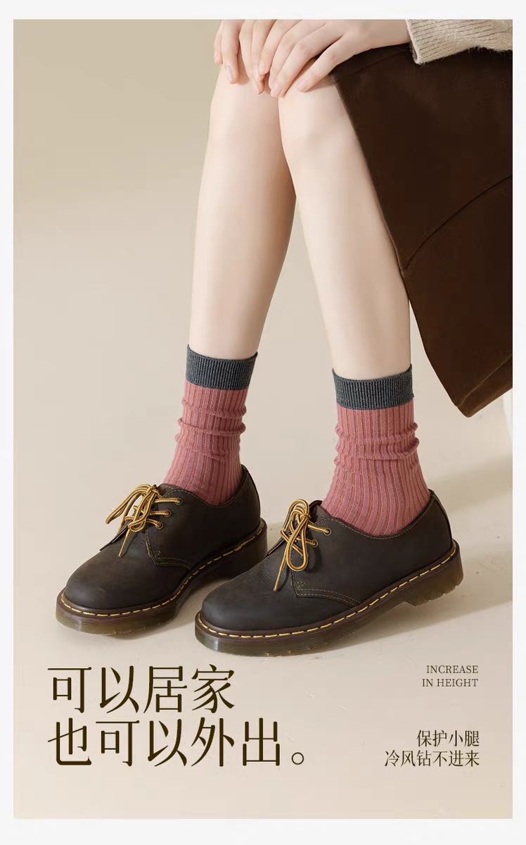 ✅仿羊毛材质保暖又柔软,穿上一累脚,真的有点爱了~ 🔺抗起球面料!防臭吸汗,舒适透气,拒绝闷湿环境下细菌滋生 🔺仿羊绒面料,柔软厚实,保暖性超赞!!像妈妈织的毛衣般温暖 🔺双针工艺,内外一致无线头,不硌脚,穿在脚上丝毫感觉不到它的存在!🔺莱卡橡筋袜口,高弹舒适不勒脚,后跟立体剪裁,贴合曲线,防滑耐磨! 🔺拼接撞色元素,视觉拉伸腿部线条,保暖的同时又不会显臃肿!