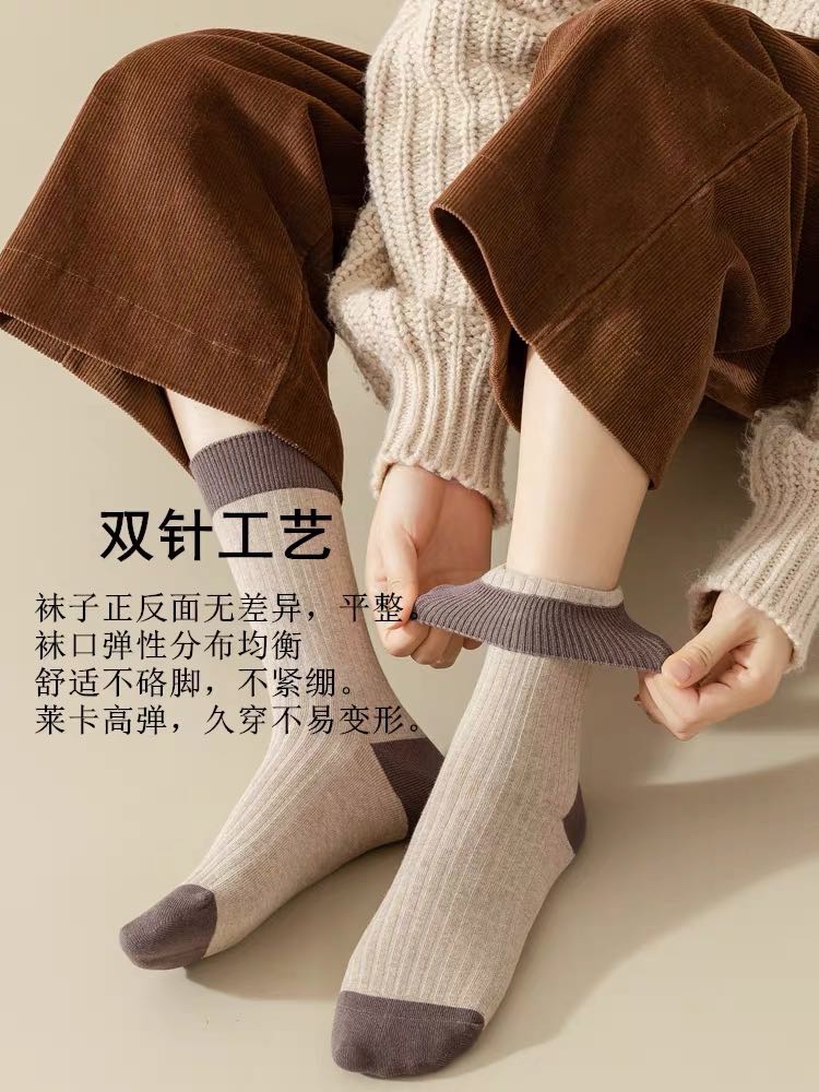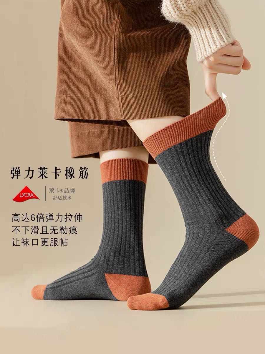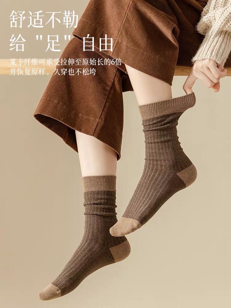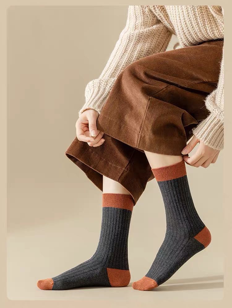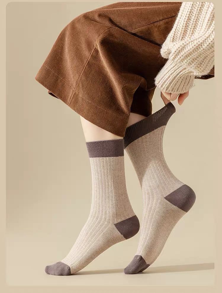 ✅仿羊毛材质保暖又柔软,穿上一累脚,真的有点爱了~ 🔺抗起球面料!防臭吸汗,舒适透气,拒绝闷湿环境下细菌滋生 🔺仿羊绒面料,柔软厚实,保暖性超赞!!像妈妈织的毛衣般温暖 🔺双针工艺,内外一致无线头,不硌脚,穿在脚上丝毫感觉不到它的存在!🔺莱卡橡筋袜口,高弹舒适不勒脚,后跟立体剪裁,贴合曲线,防滑耐磨! 🔺拼接撞色元素,视觉拉伸腿部线条,保暖的同时又不会显臃肿!