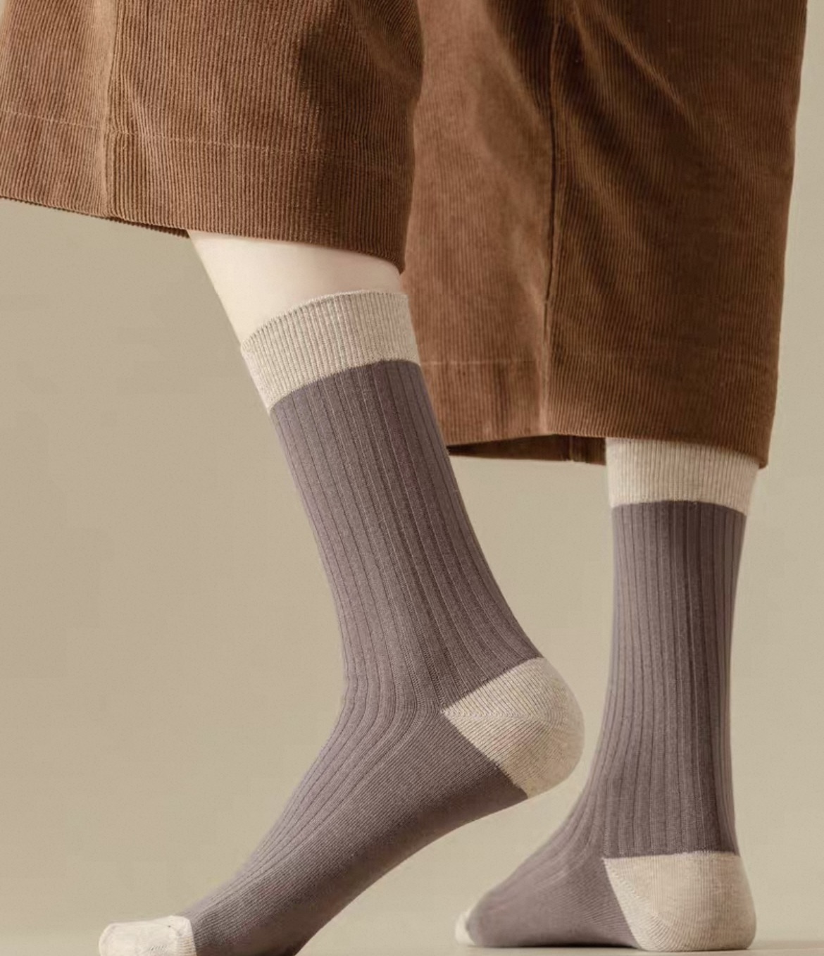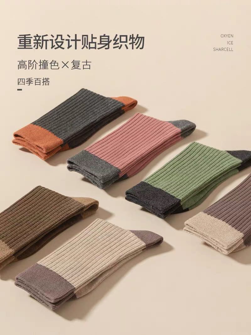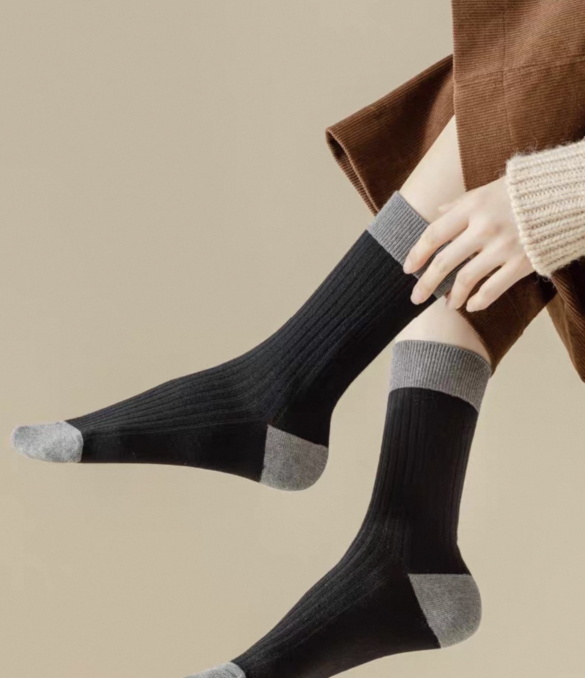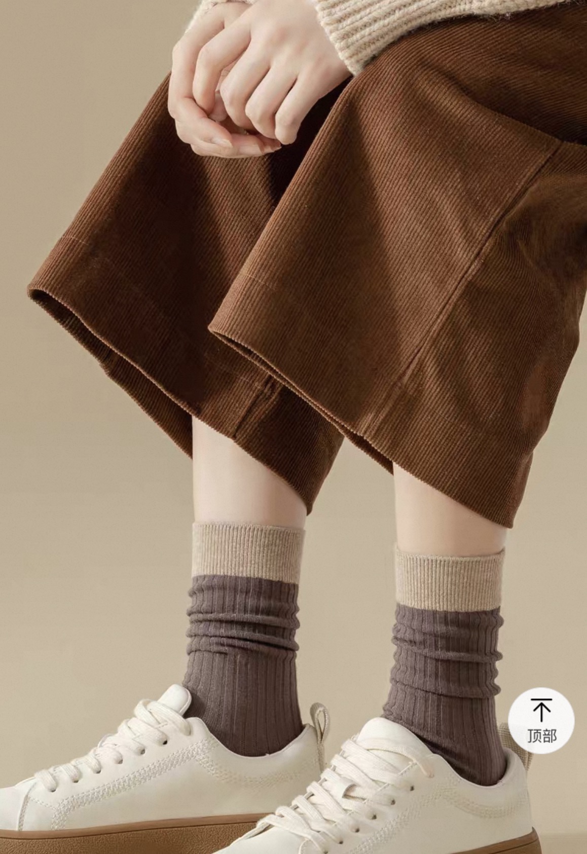 最近入手了一双超有质感的羊毛中筒袜,真的是秋冬穿搭的小心机~ 粗针撞色拼接设计很有复古韩系感,搭配大衣或者毛衣都超合适。 中筒款设计不会压腿,遮瑕效果也很棒,穿运动鞋或者靴子都好看。