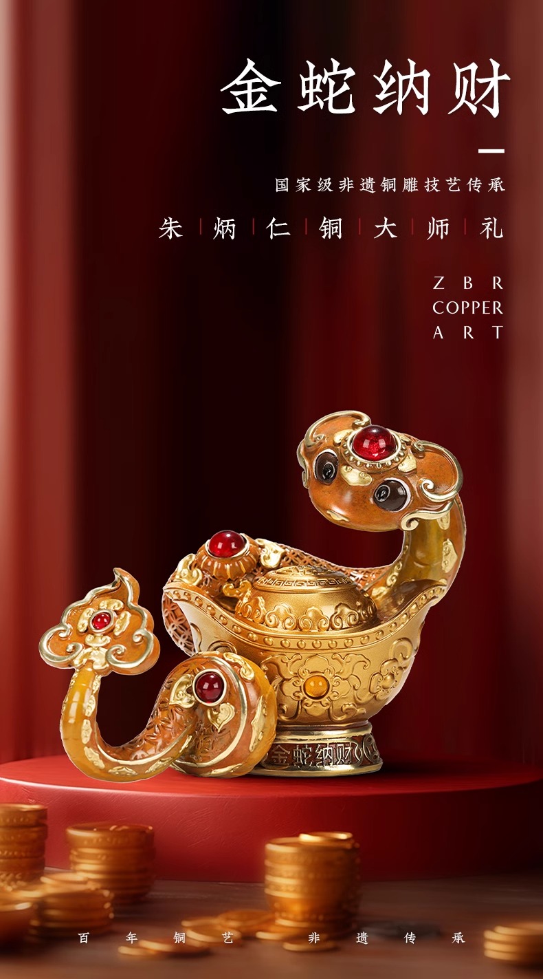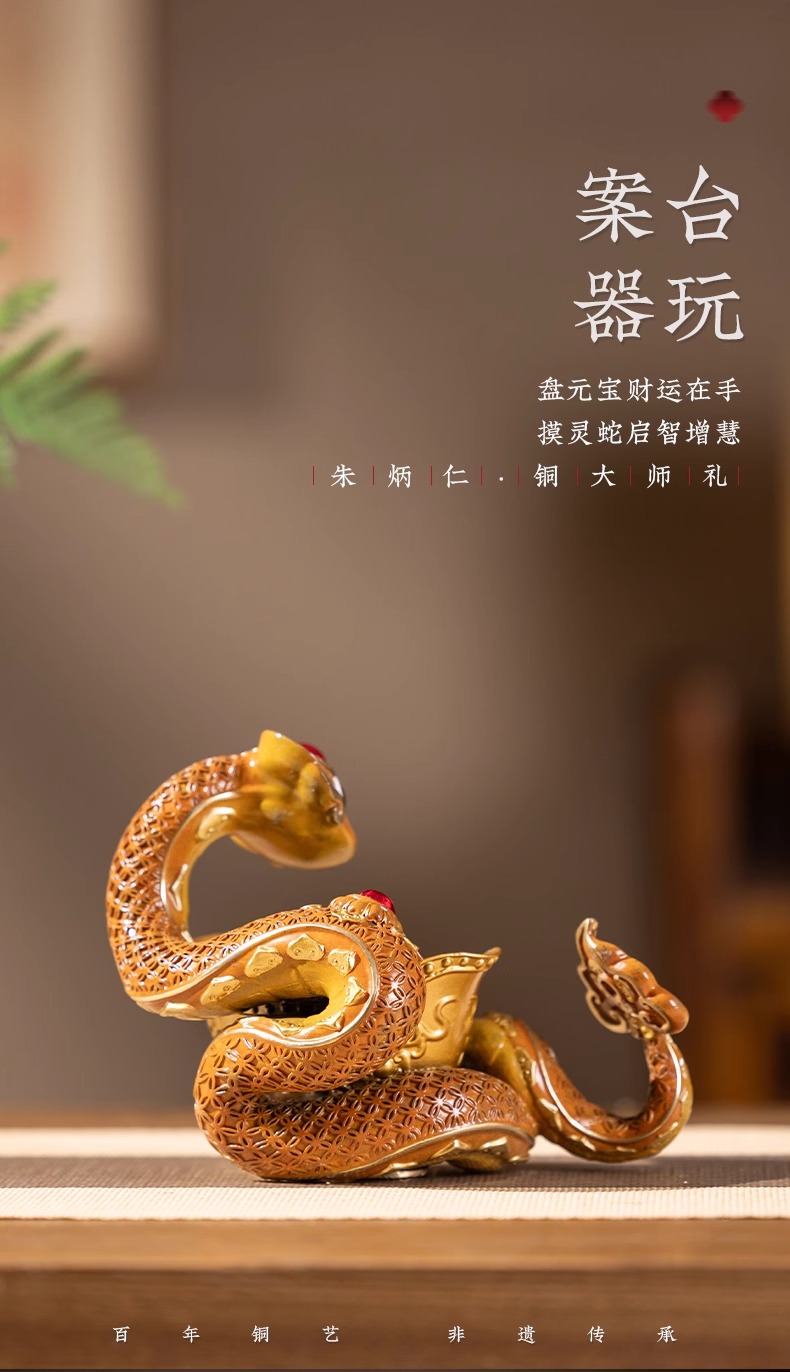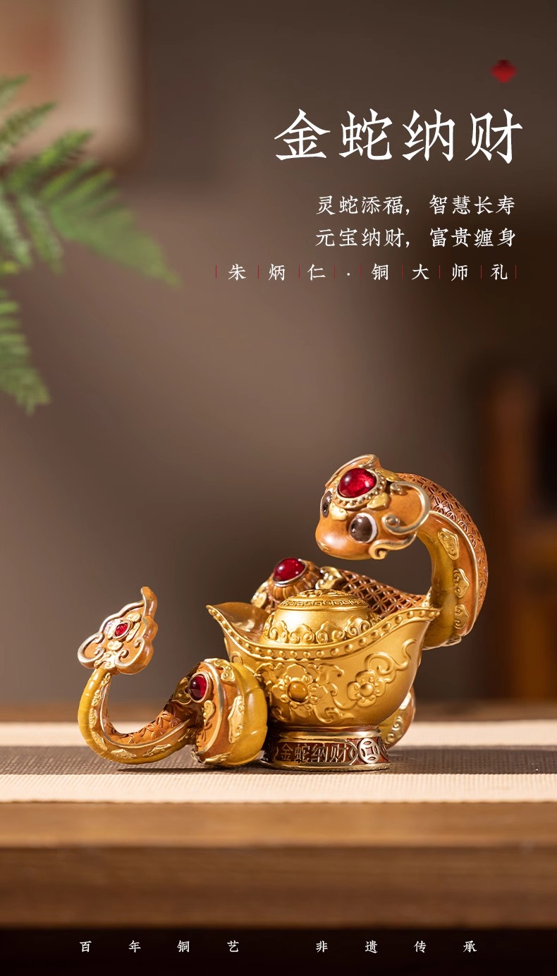 朱炳仁铜 金蛇纳财摆件蛇年生肖生日送礼书房办公桌面装饰摆件