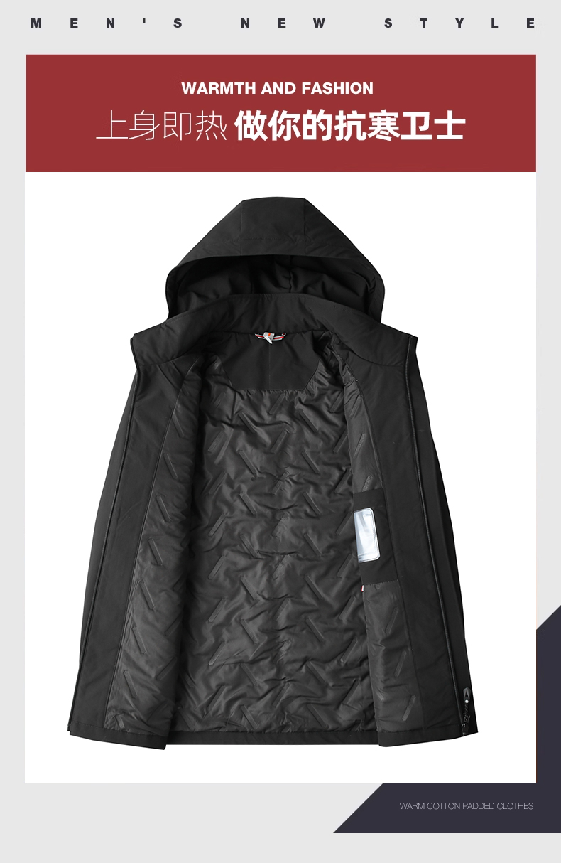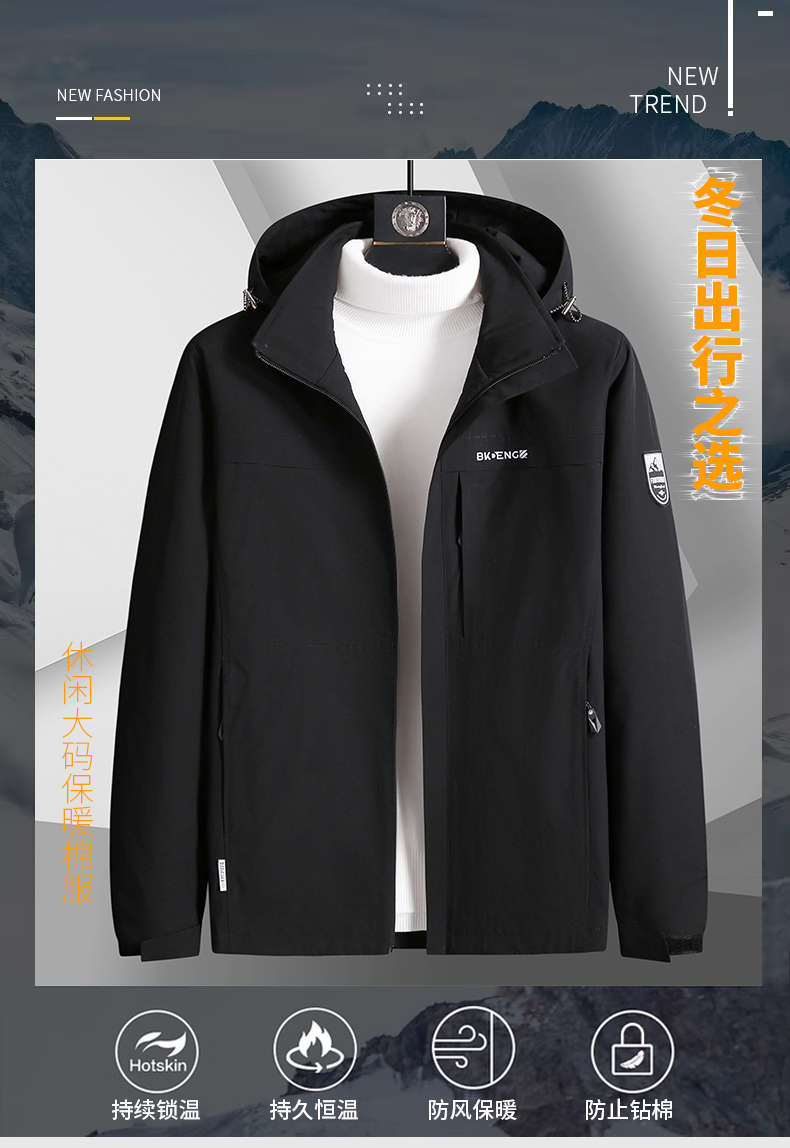 【圈】可拆卸帽【新款DK】大依优型大码多色加棉休闲棉服加肥加大外套胖子大号外套上衣男士保暖
