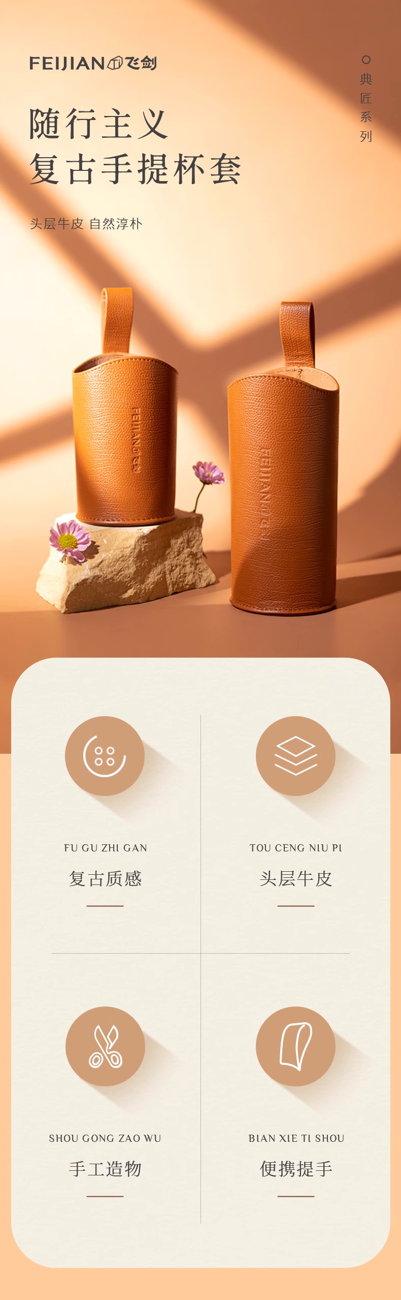 飞剑头层牛皮复古手提杯套云动290ml