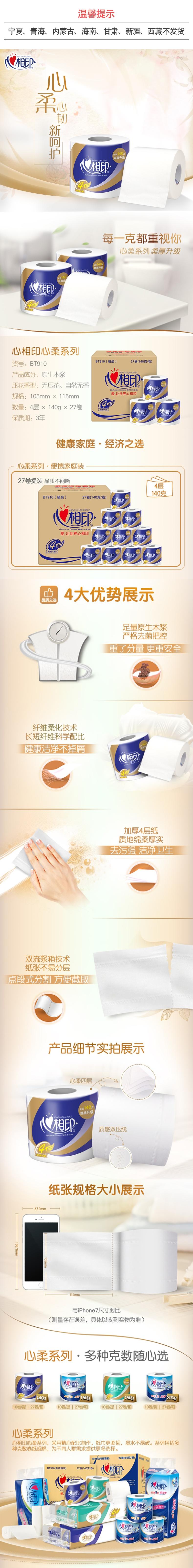 心相印 茶语经典140克27粒装四层茶叶压花卷筒卫生纸 ADA01001