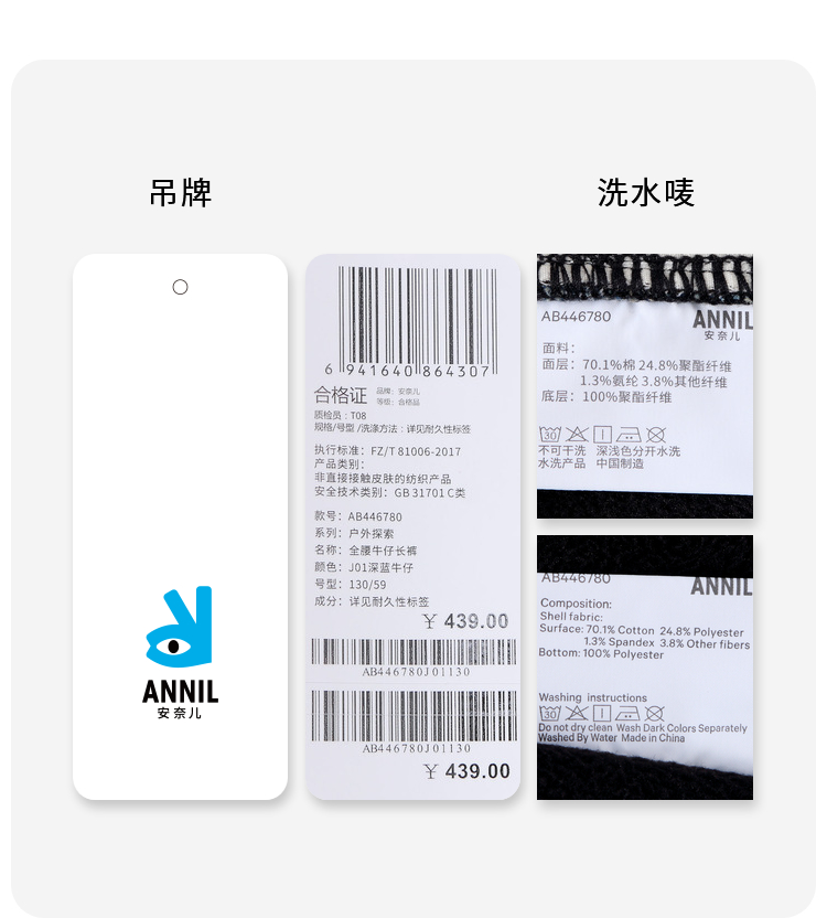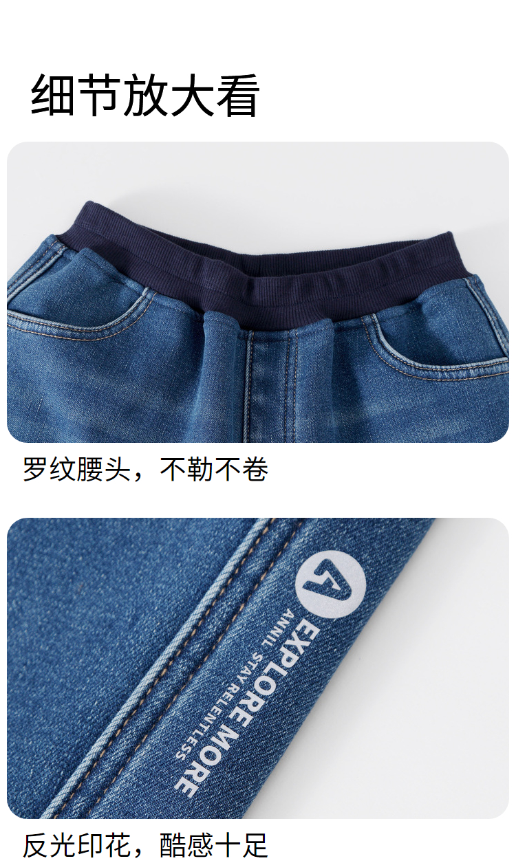 男童加绒牛仔夹裤裤子冬季新款安奈儿童装实体店同款AB446780