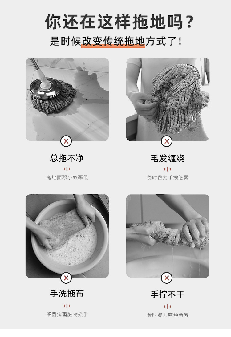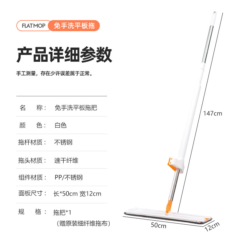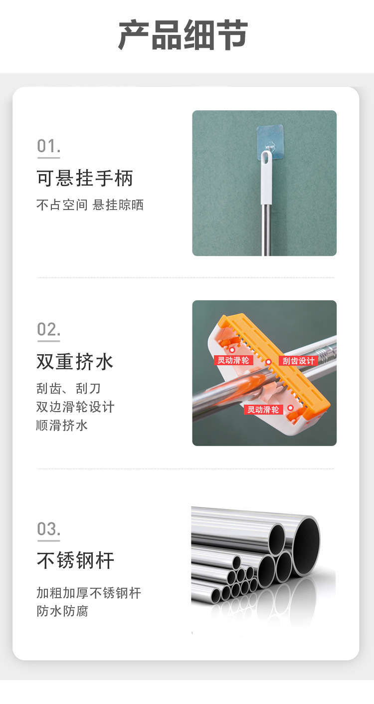 星罗家用免手洗大号平板拖把家居干湿两用地板拖客厅厨房吸水懒人拖把