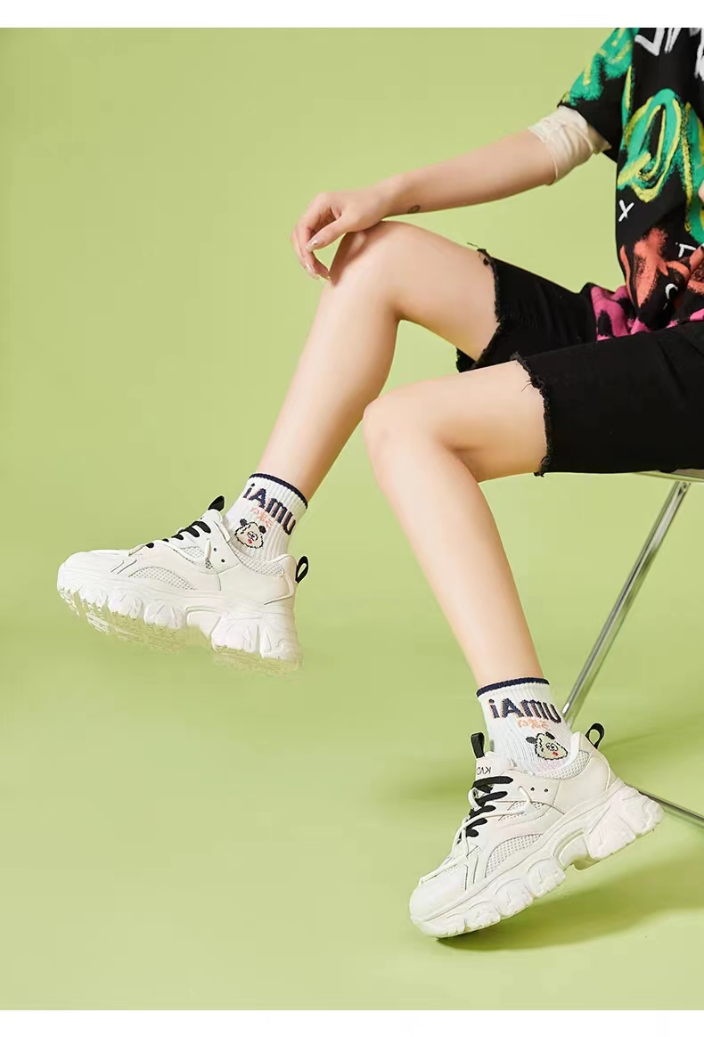 卡迪娜23年春季新款交叉绑带运动休闲鞋平跟深口老爹鞋KC231903
